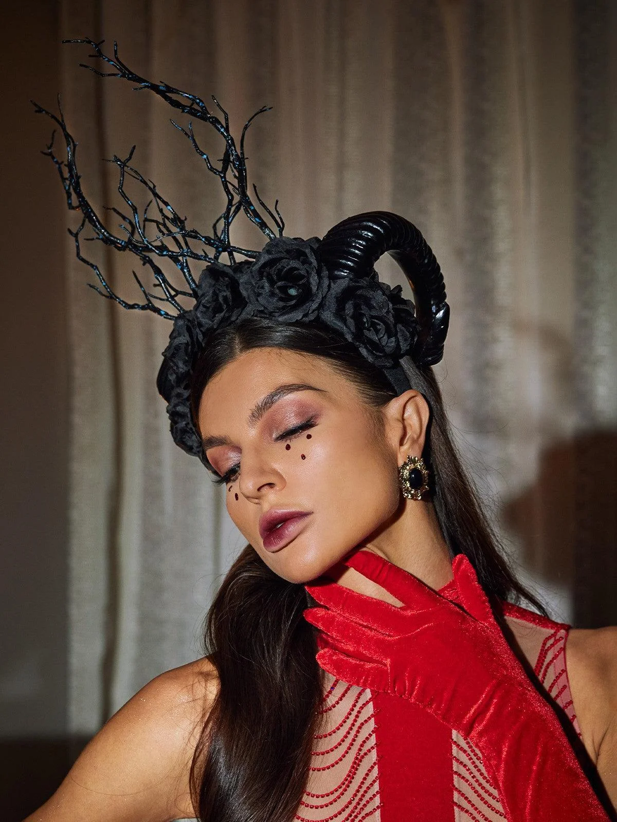 The Black Flower Headband by Mew Mews is exquisitely designed with intricate details, ideal for adding a touch of sophistication to your look on any significant event. This headband features delicate floral accents providing both style and comfort, elevating your outfit elegantly. Suitable for Halloween, parties, or special occasions, this accessory is a must-have for those seeking refined glamor and charm.