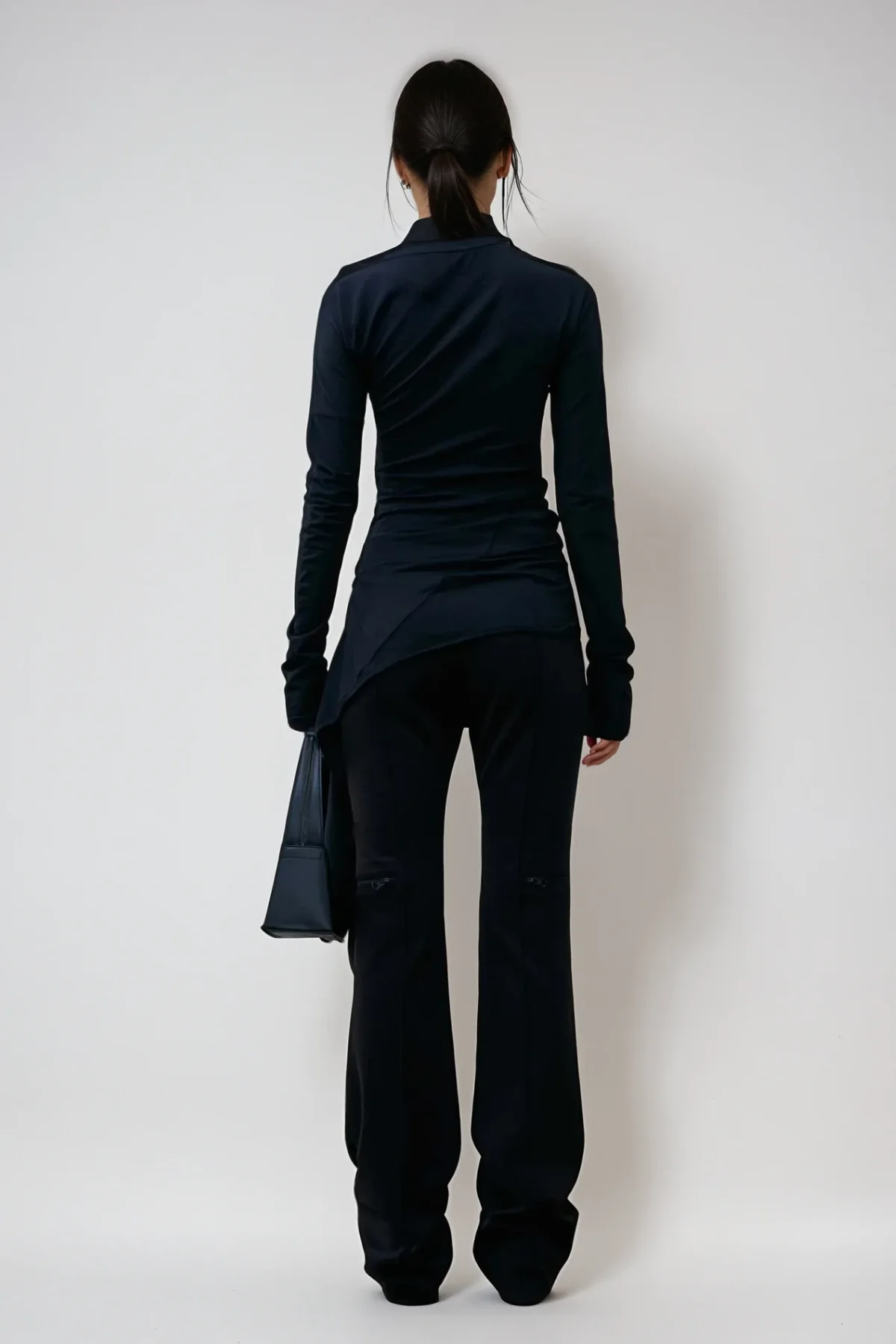 Elevate your wardrobe with the Black Fringe Asymmetric Bodycon Top. This chic essential features a unique asymmetric fringe design, exuding elegance and sophistication. Crafted from 50% Polyester and 50% Cotton, this top offers slight stretch and comfort for any occasion. Gentle machine wash for easy care. Explore this must-have versatile piece that adds a touch of elevated style effortlessly. Color may vary due to lighting. Enhance your look with the Black Fringe Asymmetric Bodycon Top!