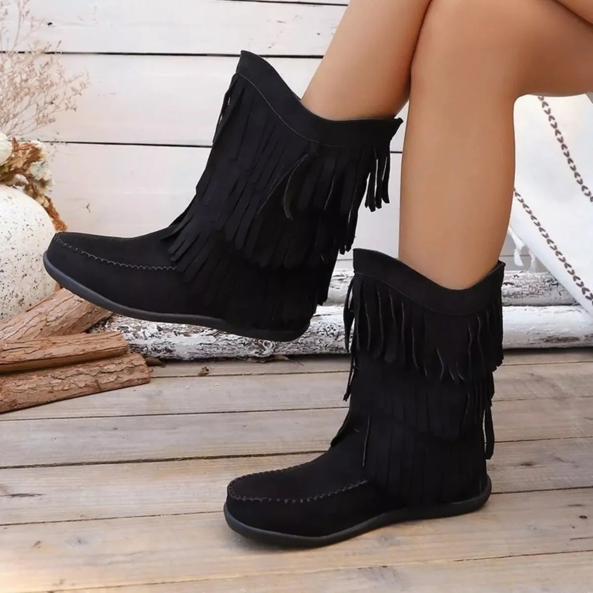 These stylish black fringe shoes boast a cozy fit true to size. Made from quality PU leather and rubber for lasting comfort. Features low heels, easy to match with various outfits. Package includes shoes only. Make a statement with your elegant steps in these sophisticated shoes. Imported and carefully crafted. Size Conversion: US5(36) – 9″, US6(37) – 9.2″, US7(38) – 9.4″, US8(39) – 9.6″, US9(40) – 9.8″, US10(41) – 10″, US10.5(42) -10.2″, US11(43) – 10.4″.