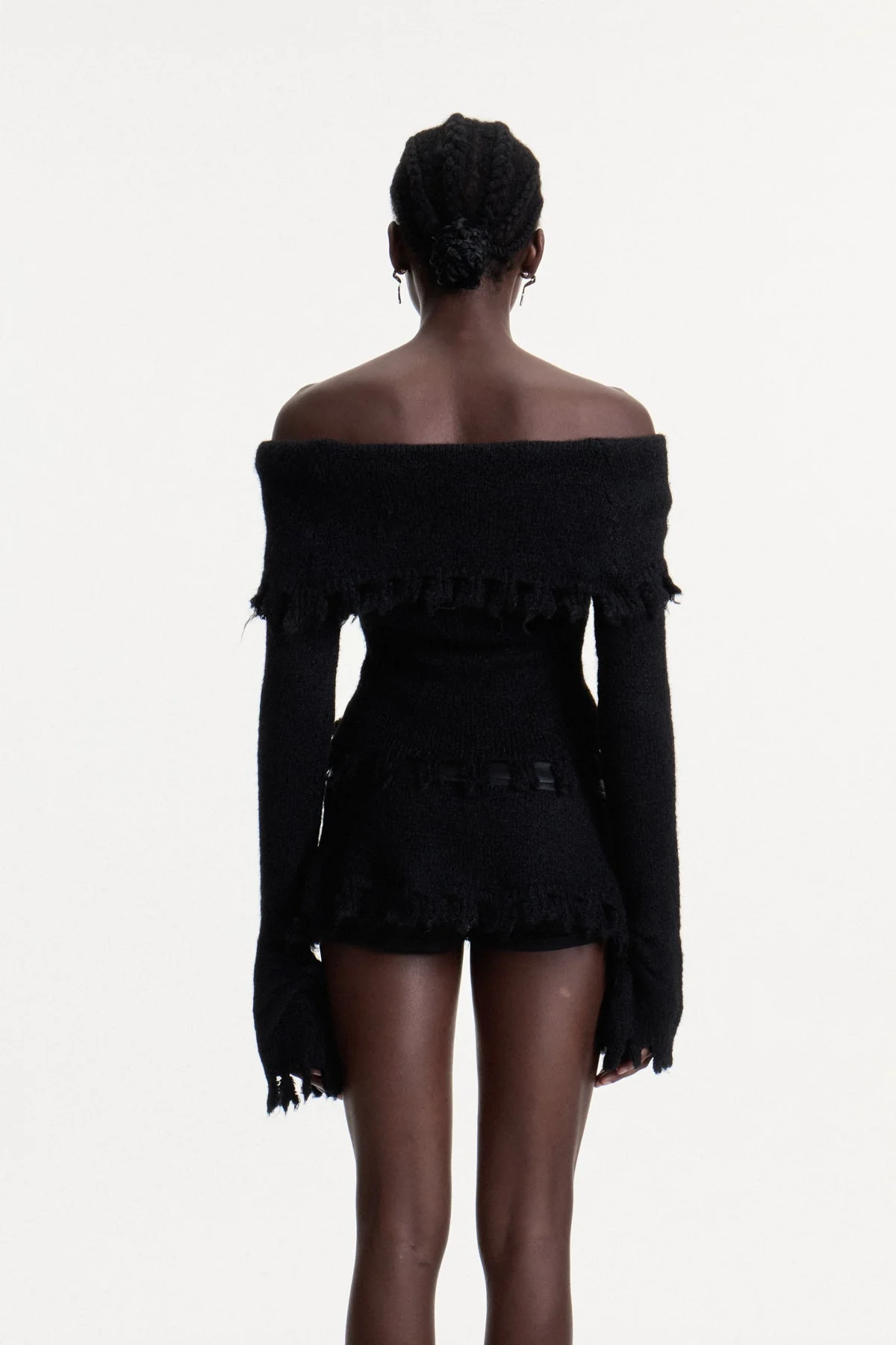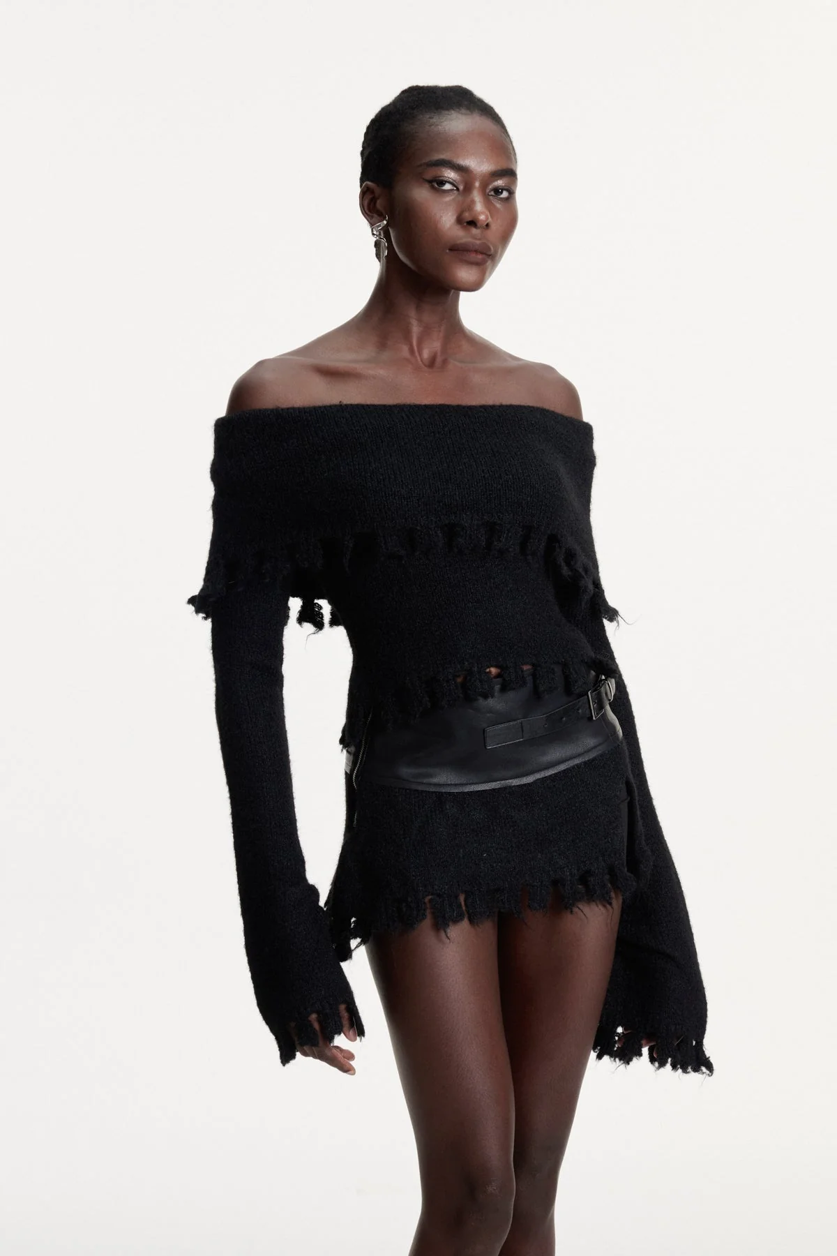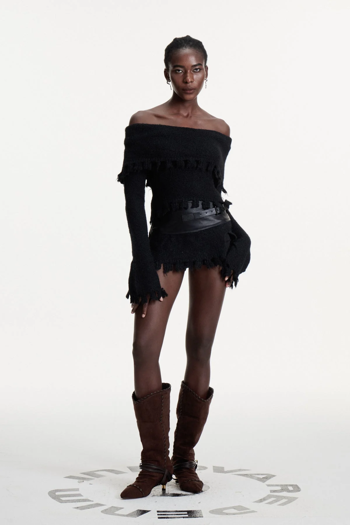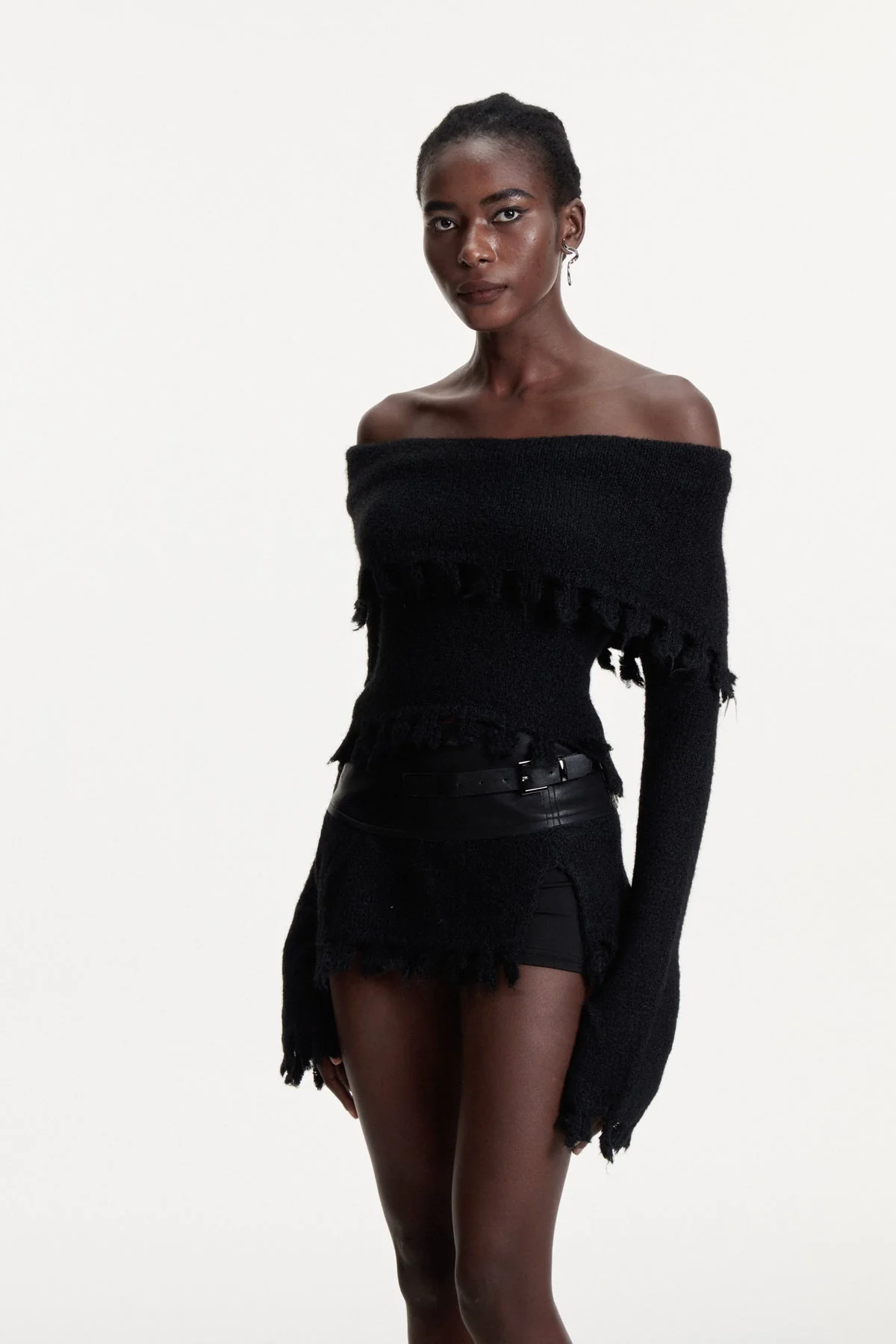 The Black Fringe Off-Shoulder Set with Skirt combines contemporary design and dynamic detailing, offering a sophisticated yet playful silhouette. This versatile set features a flattering neckline and eye-catching movement, making it ideal for confident, fashion-forward statements at events. Crafted for both comfort and elegance, this set is a refined addition to your wardrobe. The slight stretch ensures a comfortable fit. Gentle machine wash recommended. Please note, color may vary due to lighting in images.