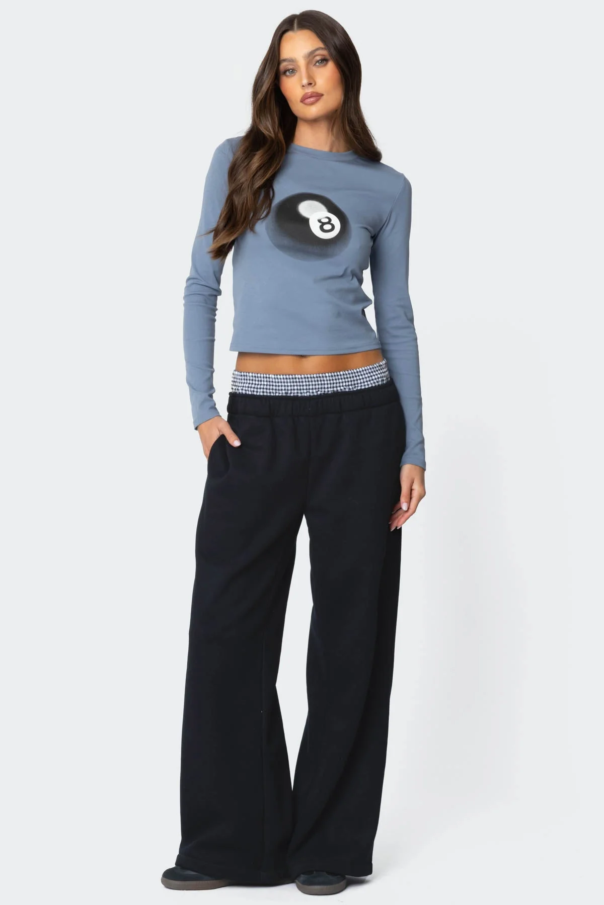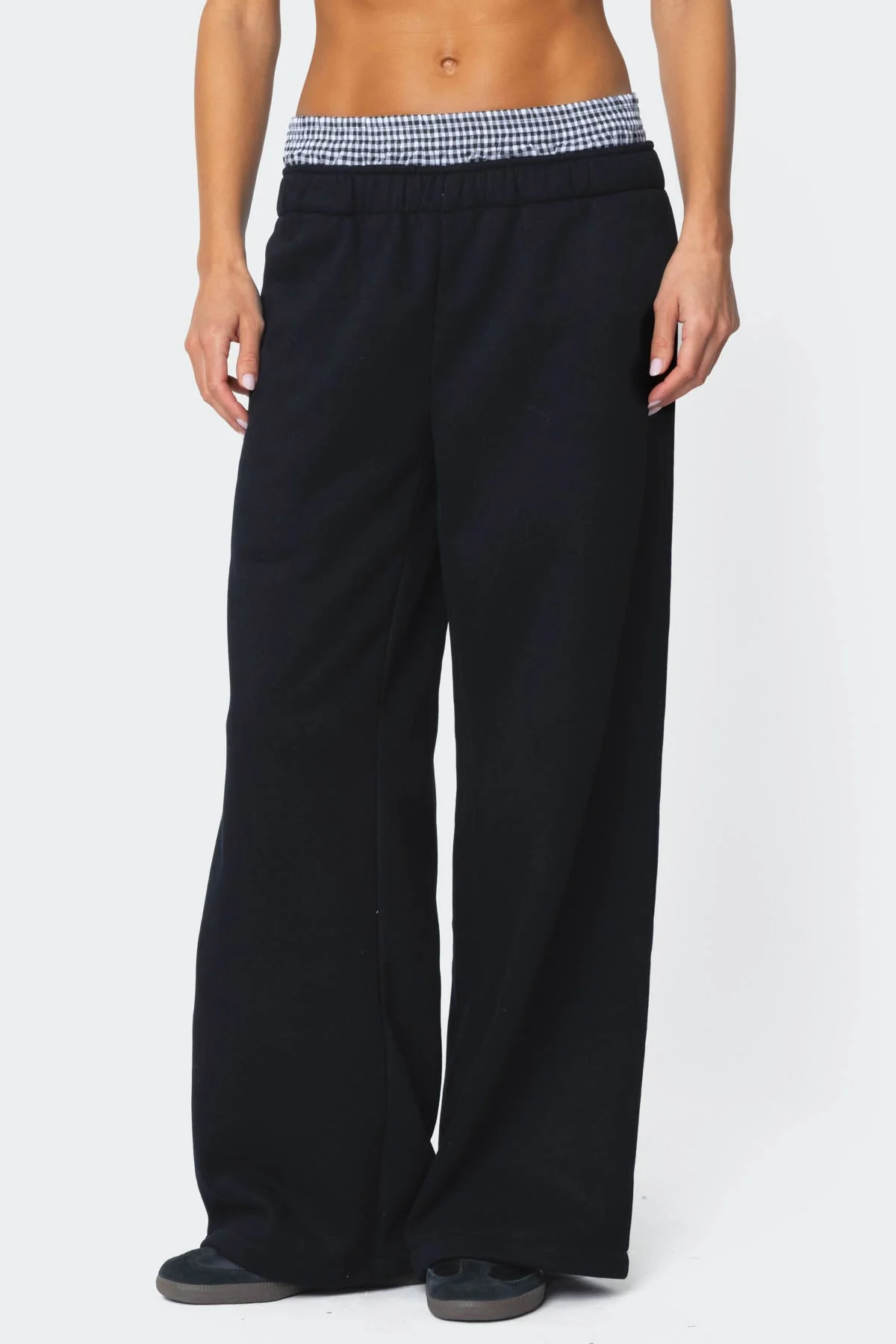 Indulge in supreme comfort with our Black Gingham Boxer Detail Wide Leg Sweatpants. Crafted from a blend of polyester and cotton, these sweatpants feature a wide-leg fit, elastic waistband, and stylish gingham boxer detail. Ideal for lounging or casual outings. Machine washable for easy care. Available in sizes XS, S, M, L, and XL.