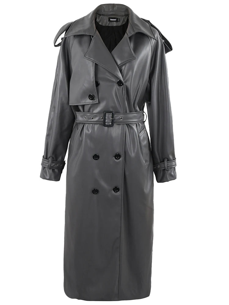 Step out in style with our Limited Edition Black & Gray Trench Jacket for women. Crafted from a Premium Faux Leather & Cotton blend, this showstopper combines luxury with quality. The trendy design ensures you make a statement wherever you go. The jacket features a size chart in both centimeters and inches for your convenience. Cultivate a happy and satisfied shopping experience with In The End Cult. Contact us for any assistance.