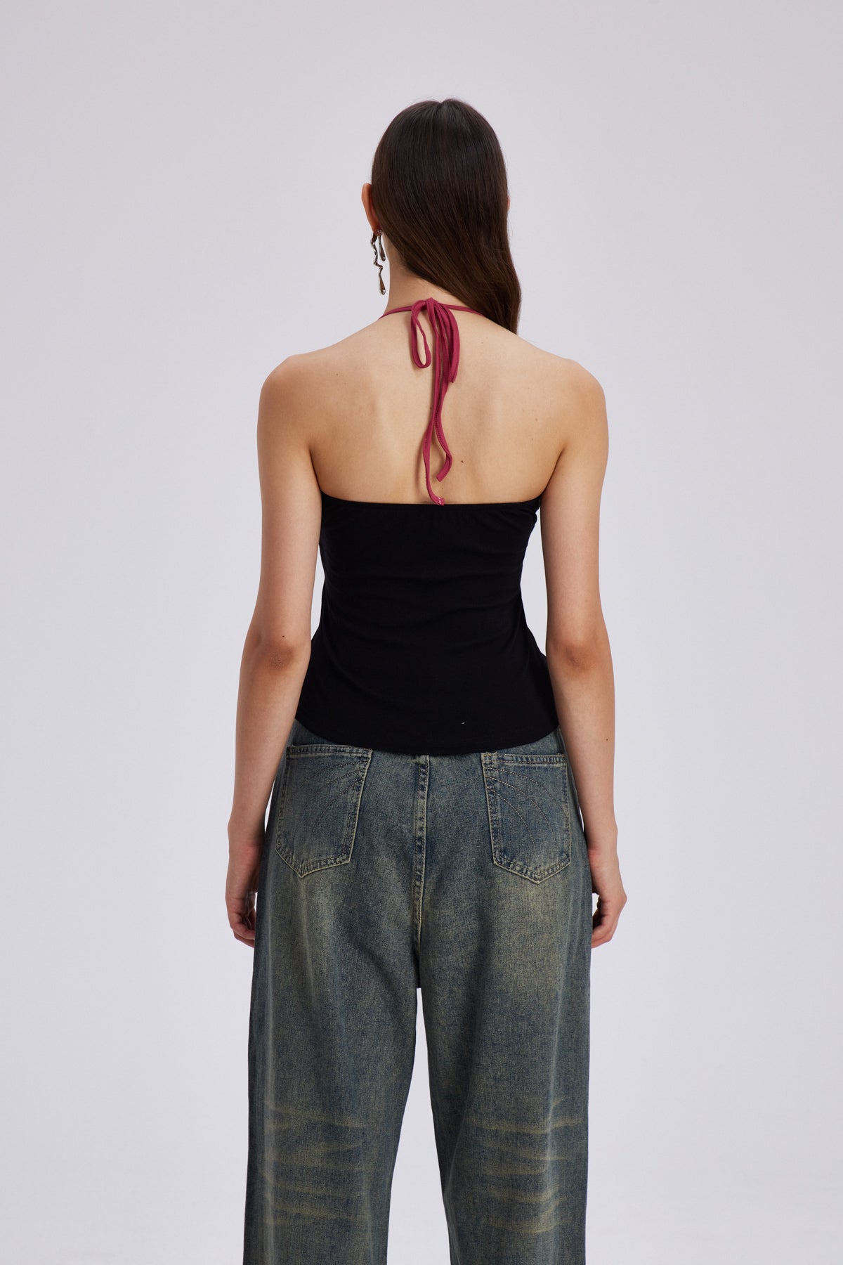 Elevate your style with the Black Halter Neck Bodycon Top . This top features a sleek, form-fitting silhouette that accentuates your natural curves and ensures a comfortable fit. The halter neck design adds a touch of sophistication, perfect for both casual outings and evening events. Made with stretch fabric for a flattering look and ease of movement. Enhance your wardrobe with this essential piece. Stretch Factor: Slight Stretch. Care Instructions: Gentle machine wash. Please note that the color may vary slightly due to lighting effects in images.