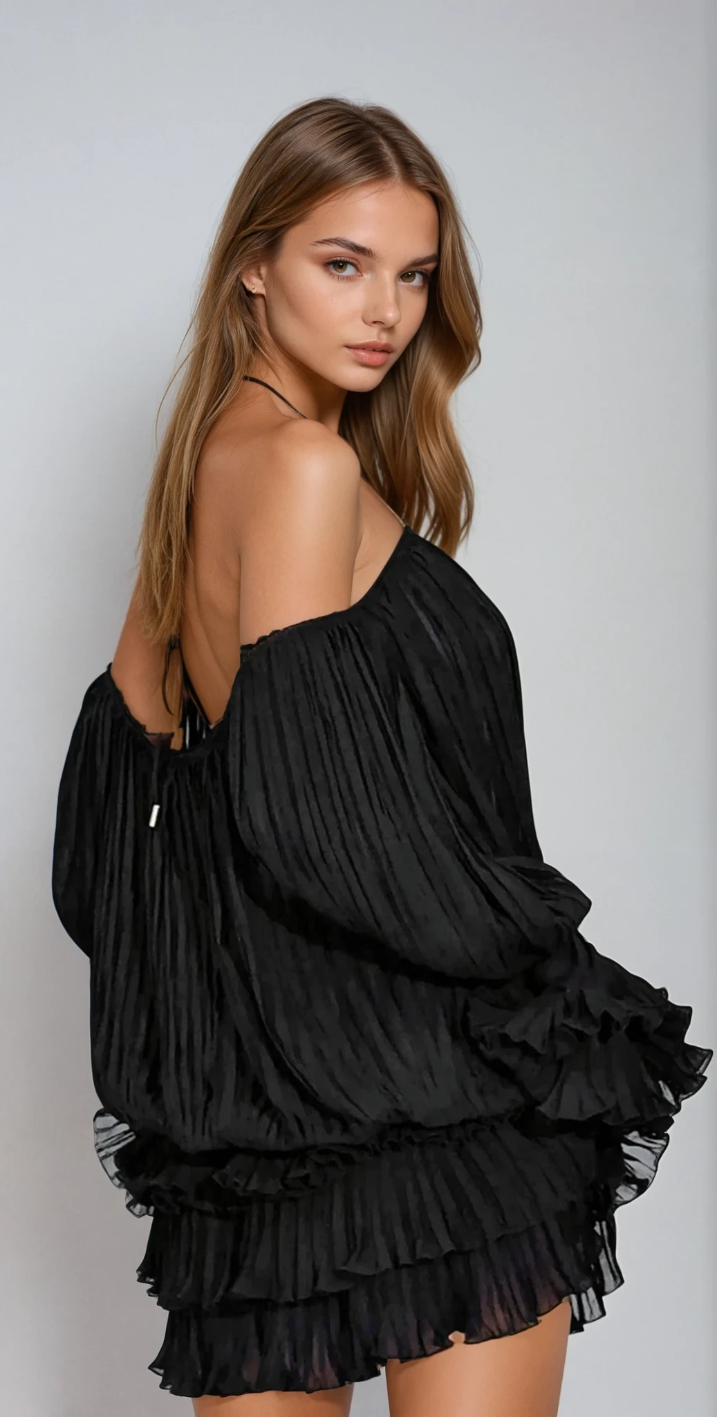 The Black Halter Neck Ruffle Mini Dress combines elegant design with modern sophistication. This dress features a flattering halter neckline and delicate ruffle detailing, offering a refined silhouette ideal for evening events or stylish daytime occasions. Its mini length enhances a youthful, confident look while the black hue ensures versatile pairing options. Crafted to balance comfort and style, this piece is a timeless addition to any wardrobe seeking expert-level fashion refinement. The slight stretch enhances wearability, and it is easy to clean with gentle machine wash. Please note that color may vary due to lighting in images.