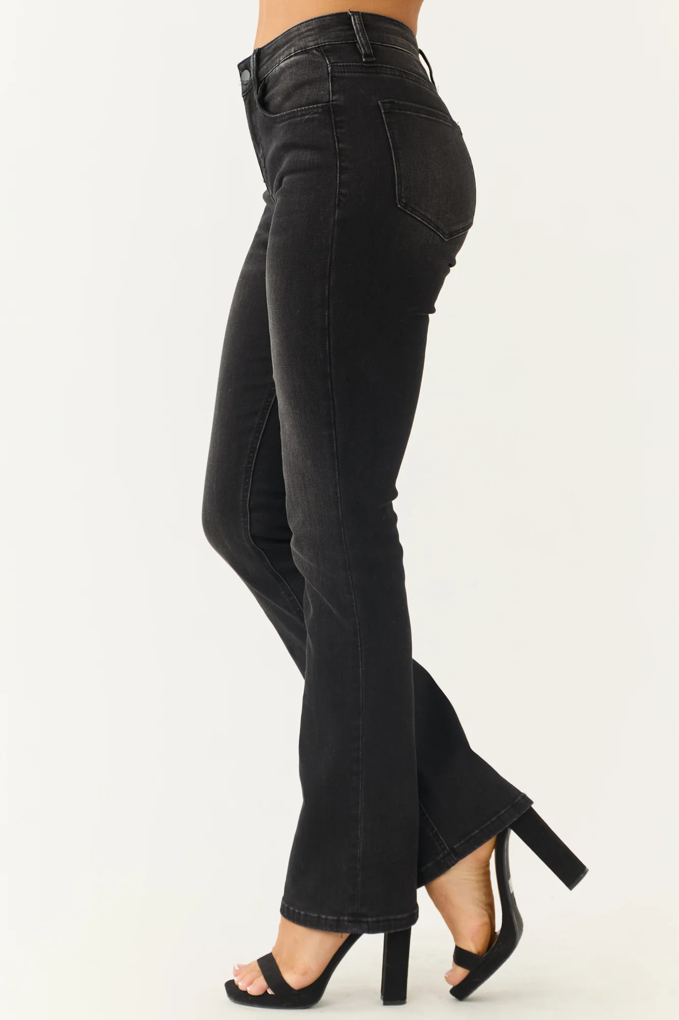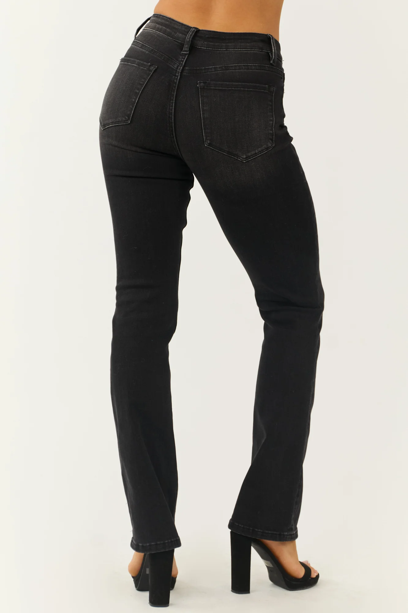 Experience comfort and style all day with these Black High Rise Bootcut Jeans. Made of 74% Cotton, 24% Polyester, and 2% Spandex, these jeans feature a stretchy material for a flexible fit, 5 functional pockets, belt loops, zippered fly with button closure, and front/back rise of 10.5″ and 12″. The inseam measures 32″ and fits true to size. Perfect for any occasion, these semi-stretchy denim jeans are a must-have for your wardrobe. Easy to care for, machine wash cold inside out with like colors, tumble dry low, and warm iron if needed.
