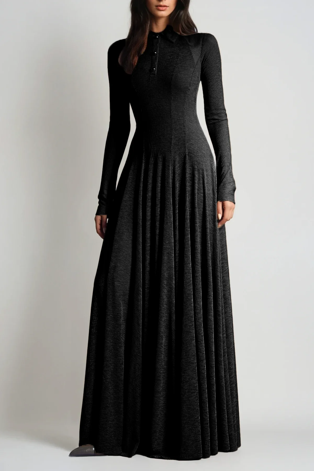 Indulge in the sophisticated comfort of the Black Knit Long Sleeve Ruffle Maxi Dress. Crafted from soft knit fabric, this dress offers ease of movement, a flattering silhouette, and coverage for cooler days. Delicate ruffle detailing adds a refined touch, while the maxi length creates an elegant flow for day to evening wear. A versatile and polished wardrobe essential for those seeking style and comfort.
