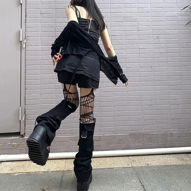 Indulge in elegant gothic fashion with these mysterious Black Lace Knee Socks. Let your dark soul shine through with these stylish accessories that will appease your goth heart. Made of high-quality polyester mesh, these socks are one size fits all and perfect for expressing your unique style.