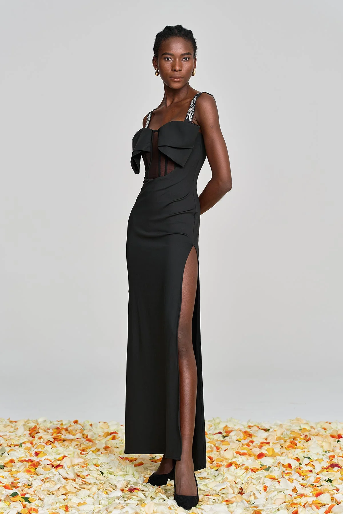 Elevate your style with this stunning Black Lace Rhinestone Split Maxi Dress. Perfect for any special occasion, the intricate lace detailing and sparkling rhinestones exude glamour. The modern split design adds a contemporary edge, while the comfortable fit suits all body types. Crafted from a blend of 50% Polyester and 50% Cotton with a slight stretch for added comfort. This dress is versatile and chic, ideal for making a statement. Gentle machine wash recommended. Please note, color may vary slightly due to lighting in images.