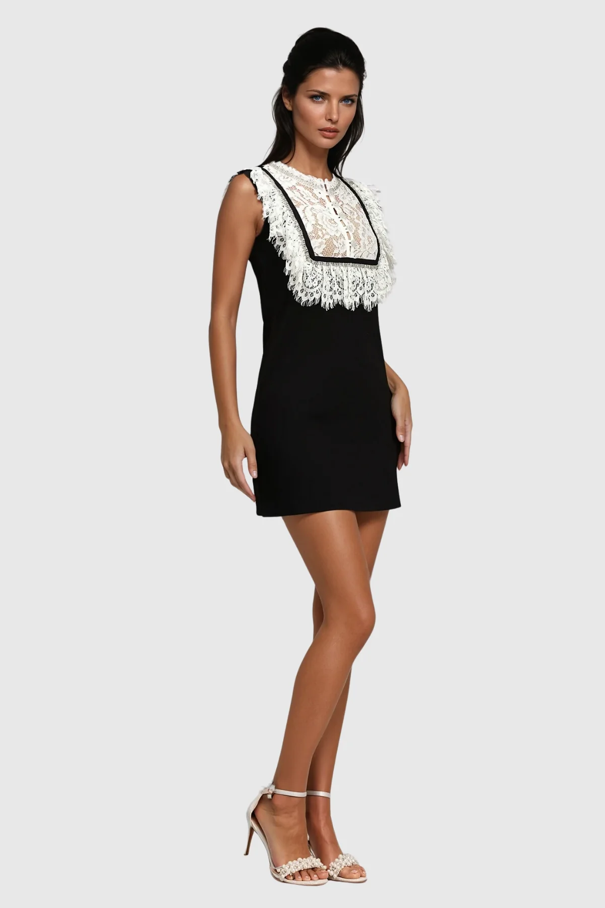Experience the blend of delicate lace and modern silhouette with the Black Lace Sleeveless Mini Dress . This refined dress offers comfort and movement with a sleeveless design. The mini length adds a youthful touch, making it perfect for elegant occasions or stylish evenings. Revel in the intricate detailing that enhances your grace and confidence, with a gentle machine wash care routine. Note: Color may vary due to lighting differences. Elevate your wardrobe with this romantic coquette piece, available in size S.