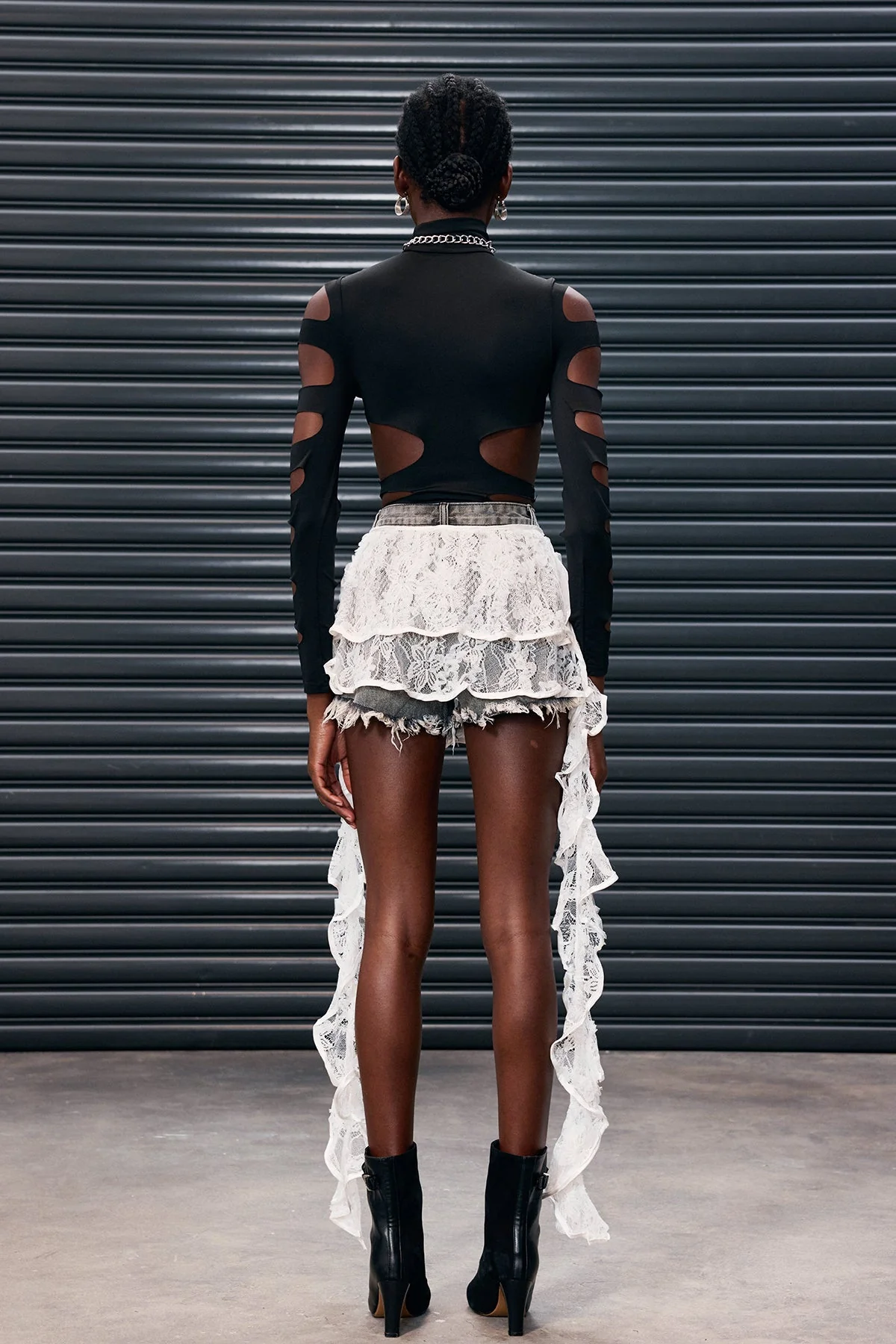 Elevate your denim collection with our Black Lace-Up Fringe Denim Shorts. These trendy and chic shorts feature lace-up detailing with fringe accents for a stylish flair. Embrace a boho-chic vibe effortlessly. Crafted from durable black denim (50% Polyester, 50% Cotton) for long-lasting comfort. Please note, color may vary due to image lighting. Machine wash gently for easy care.
