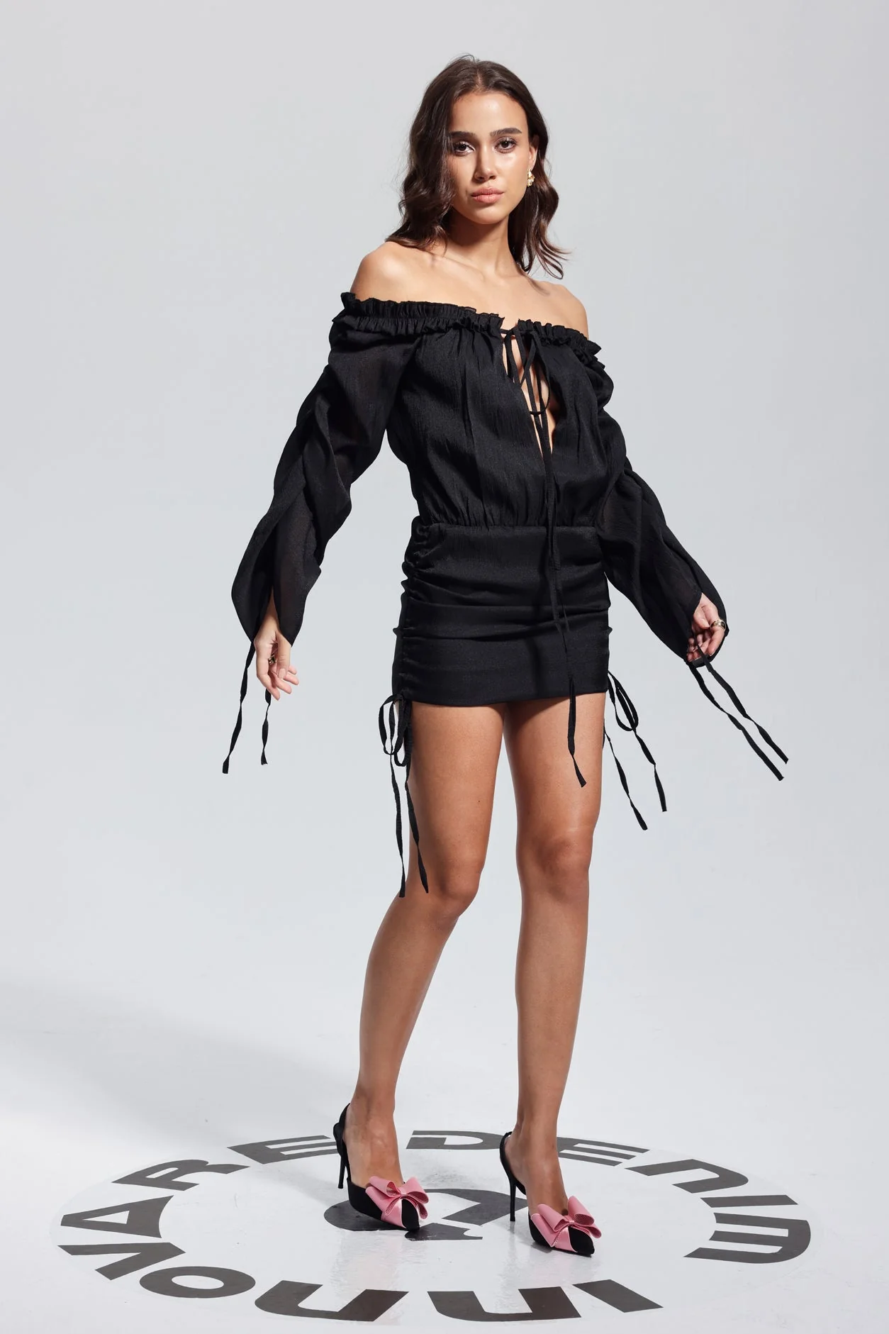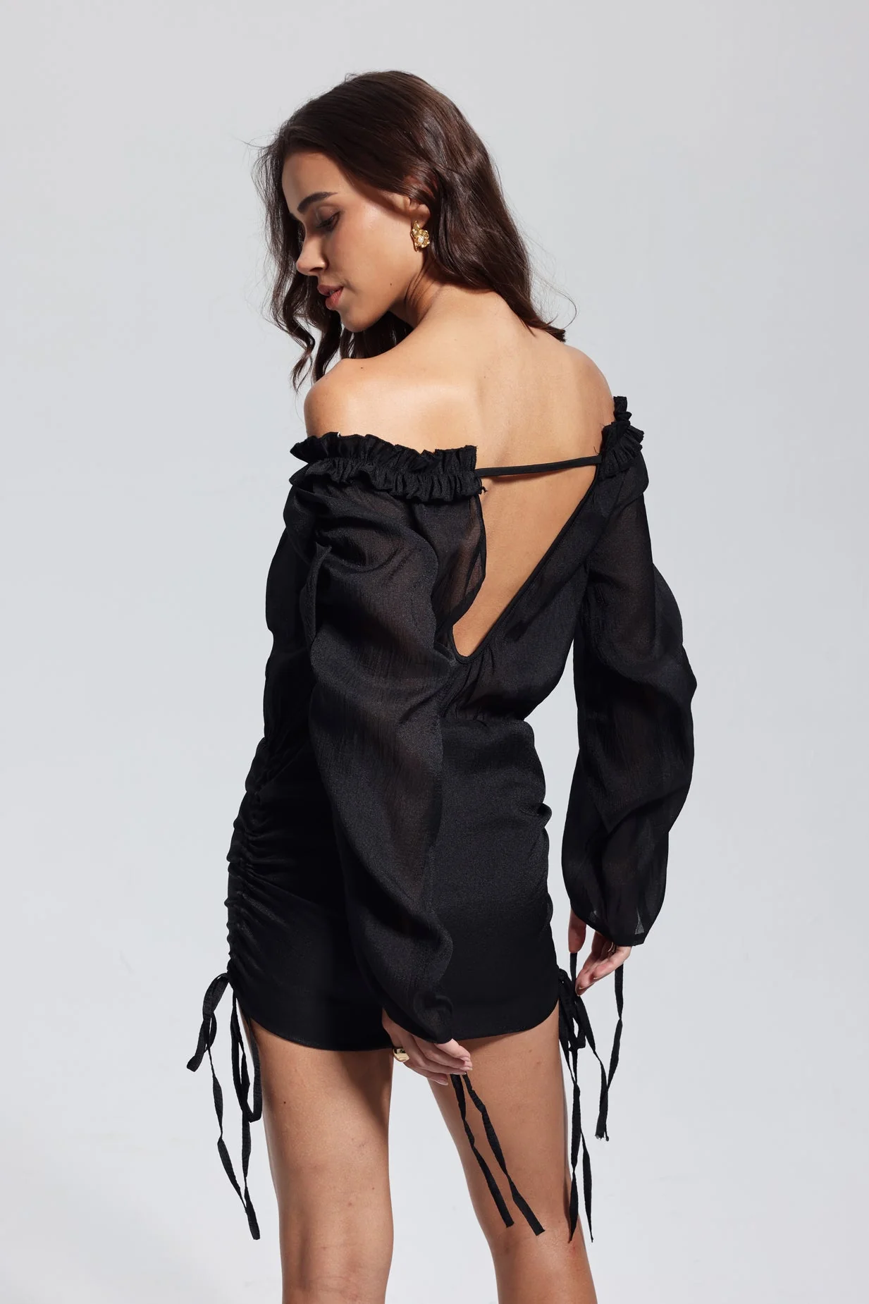 Indulge in the allure of the Black Lace-Up Mini Dress with Mesh Back Detail. Designed for a sexy and sophisticated look, this dress features a mesh fabric that adds a touch of sensuality. The backless design and lace-up detail create an enchanting silhouette that is perfect for a night out. Expertly crafted with 100% Polyester material. Stand out in any crowd with this timeless piece that is gentle machine washable. Please note: color may vary due to lighting. Add this dress to your wardrobe for a stylish statement.