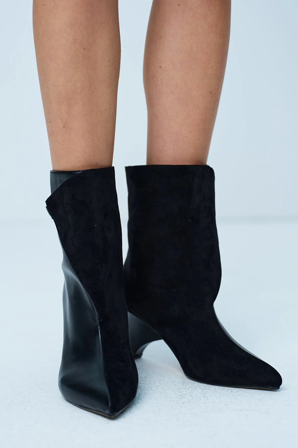 Elevate your style with these Black Leather Deconstruct Boots . Embrace the sleek deconstructed design crafted from durable 100% leather for unparalleled comfort. Whether for a casual outing or a special event, these boots offer a statement look with reliable support. Upgrade your footwear collection and step out in style with an approximately 8cm (3.1 inch) heel and a pointed toe silhouette that exudes elegance and confidence.