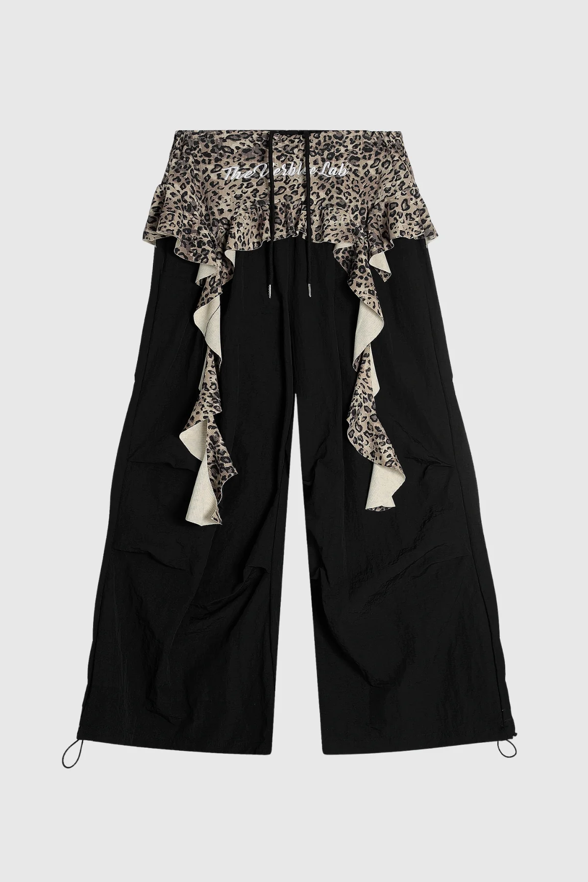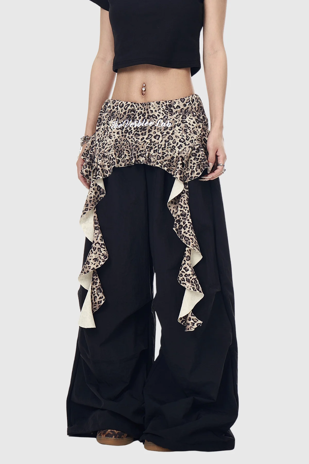 Elevate your wardrobe with these Black Leopard Ruffle Deconstruct Pants . The bold leopard print, elegant ruffle details, and avant-garde deconstructed style make these pants a must-have statement piece. Expertly crafted for a unique silhouette, they blend bold design with sophistication. These non-stretch pants are easy to clean and bring a contemporary flair to any outfit. Please note: color may vary in different lighting. Get these unique pants today and stand out from the crowd!