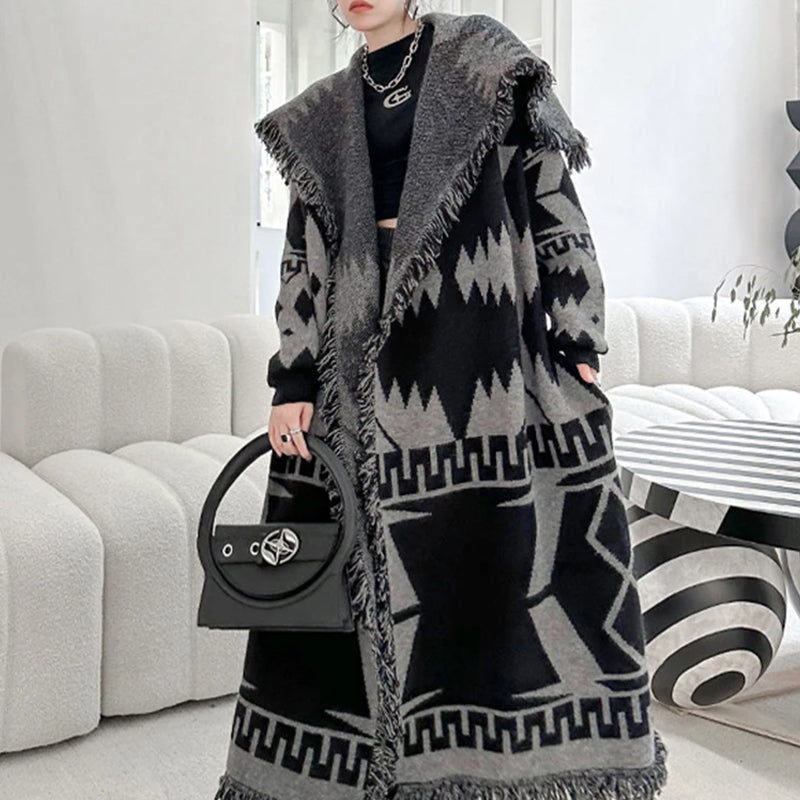 Indulge in the exquisite charm of our Womens Black Long Knitted Cardigan. Crafted from a luxurious blend of Premium Cotton and Polyester, this Limited Edition piece exudes elegance and style. Whether youre going for a casual or sophisticated look, this cardigan with a distinctive silhouette guarantees to elevate your ensemble. Embrace comfort and quality with the One Size fits all, boasting a Bust of 146.0 cm, Sleeve Length of 44.0 cm, and total Length of 115.0 cm. Complete your wardrobe with this captivating Black Long Knitted Cardigan and experience unparalleled satisfaction with In The End Cult.