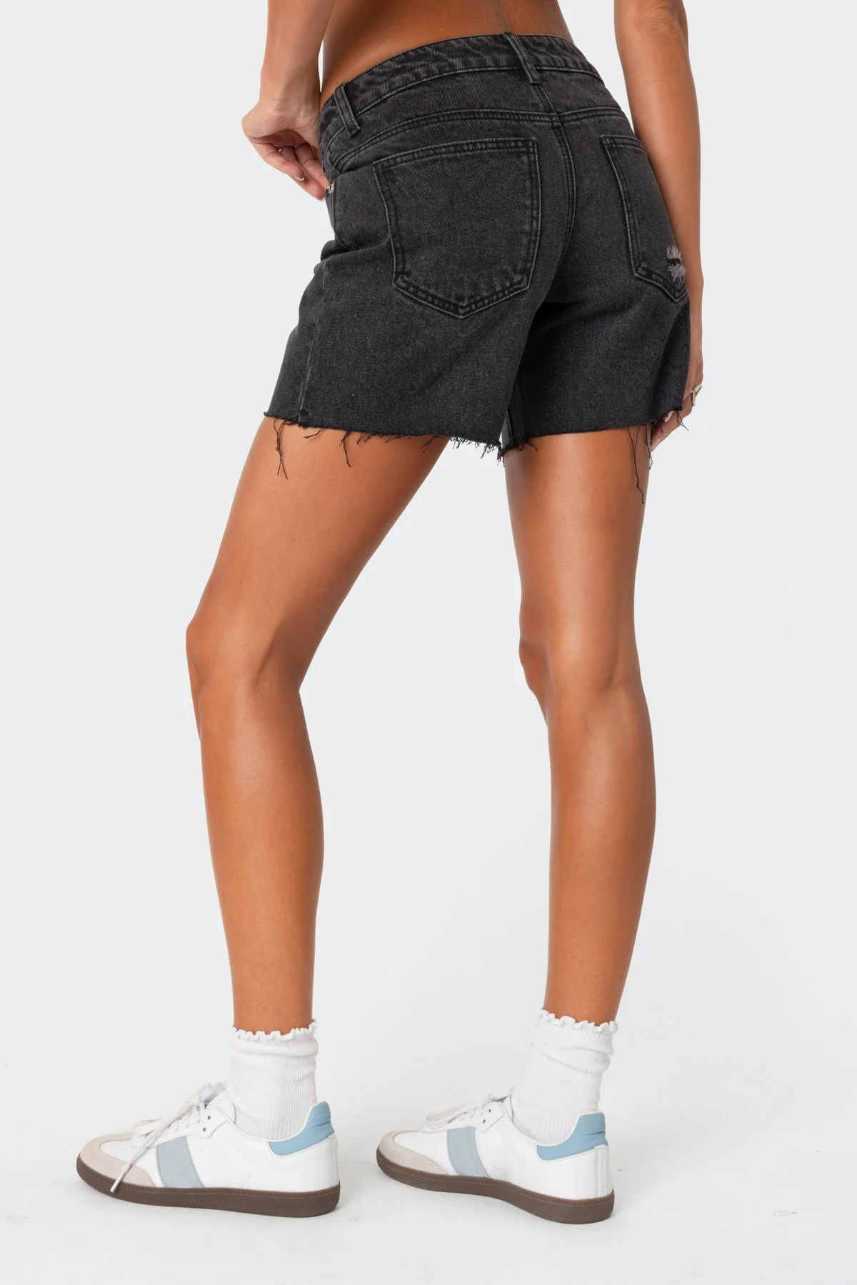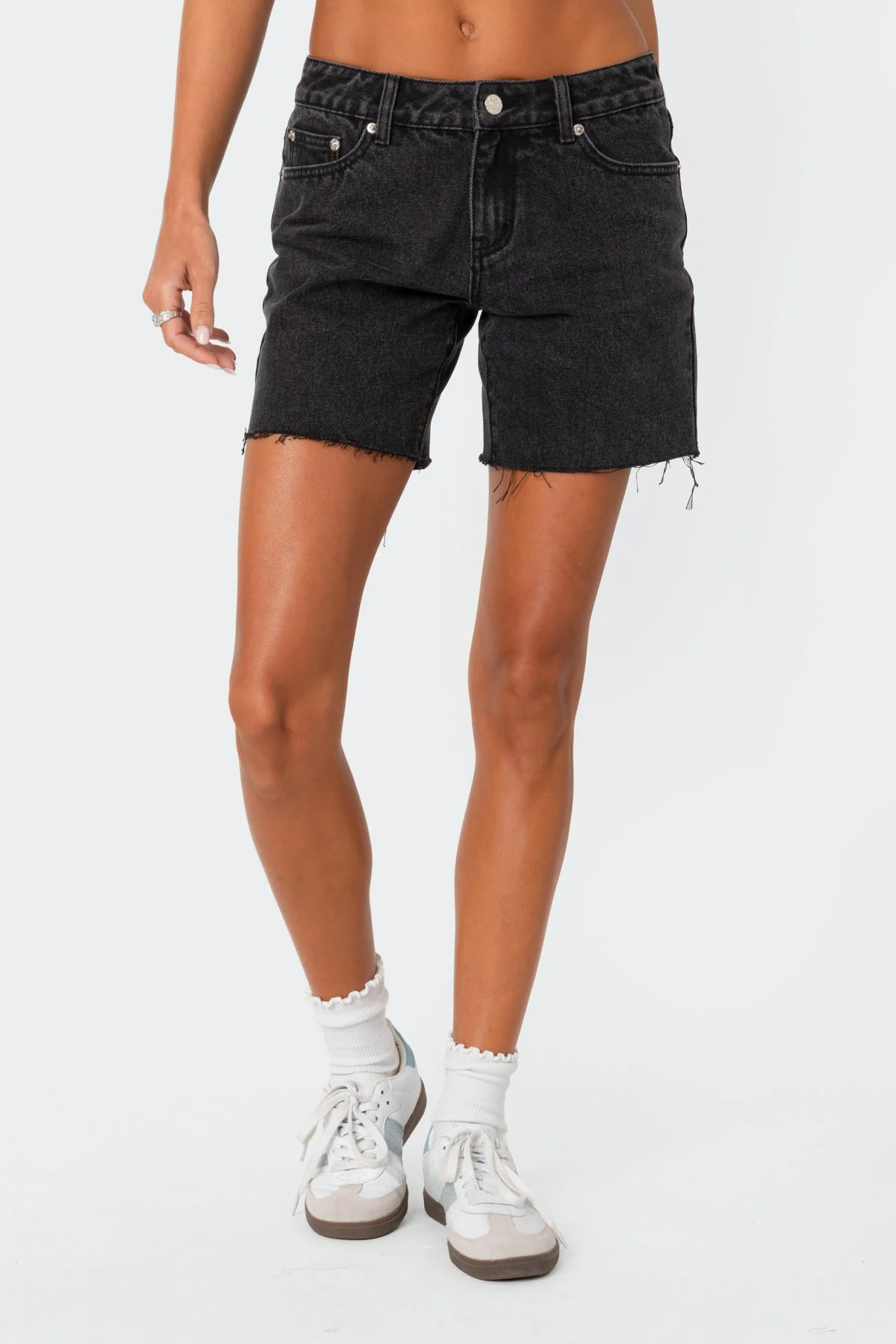 Upgrade your wardrobe with our black low rise denim shorts made from 100% cotton fabric for ultimate comfort. These shorts feature a stylish low-rise waist design with a 5.9-inch inseam, perfect for casual outings or summer days. The model is 59 tall and wears a size S. Care Instructions: Machine wash cold (max 30ºC), do not bleach, tumble dry low, iron medium heat (max 110ºC), do not dry clean. Add these versatile shorts to your collection today!