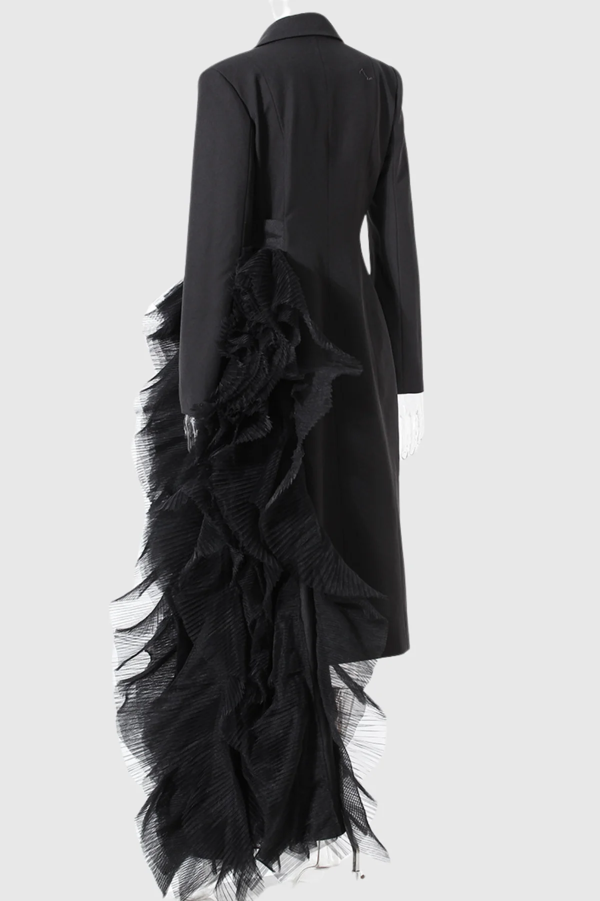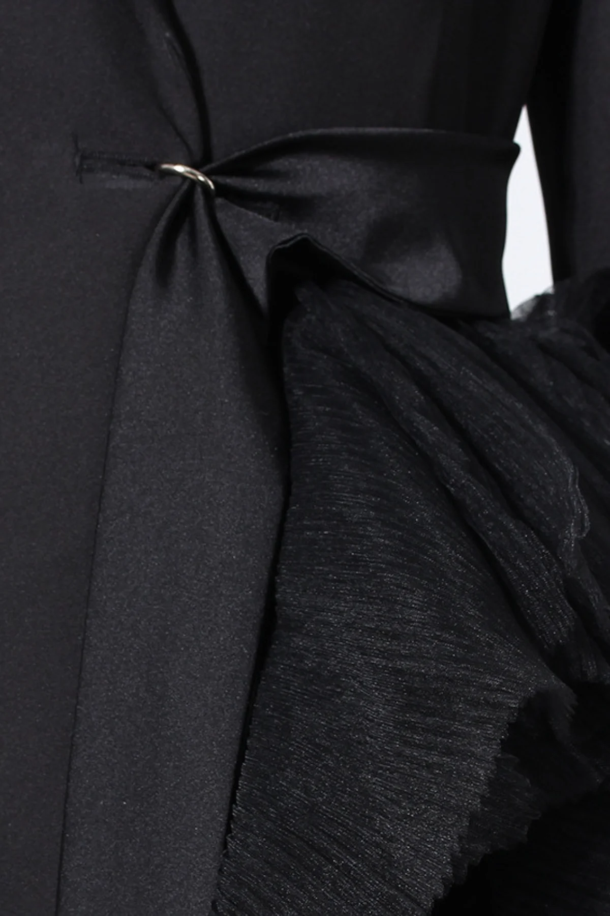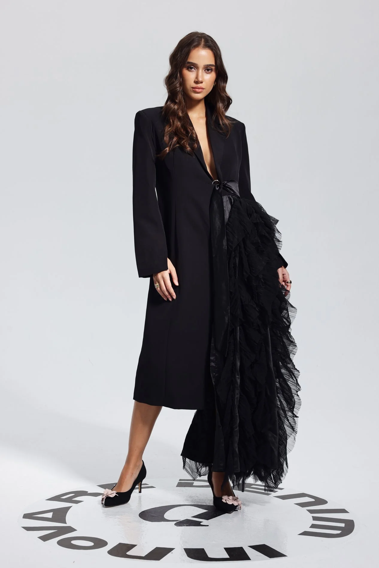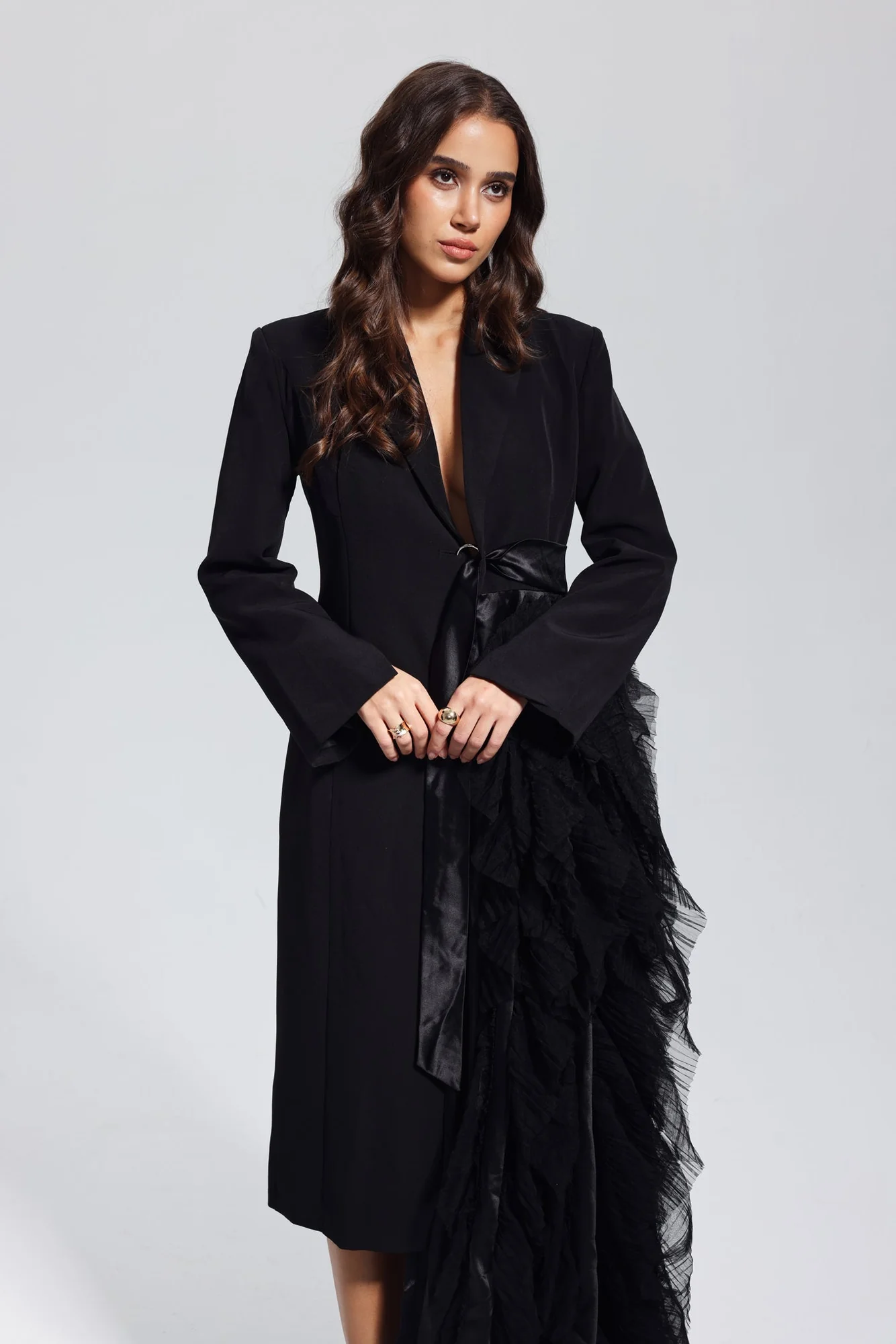 Elevate your wardrobe with the Zayla Mesh Coat in Black for women. Crafted from high-quality mesh material, this jacket seamlessly combines style and functionality. The intricate patchwork design adds a unique touch to any outfit, making it a chic essential. Suitable for all seasons with its breathable fabric, this jacket is a must-have piece. Made of 100% Polyester, it exudes sophistication. Please note: Color may vary due to image lighting.