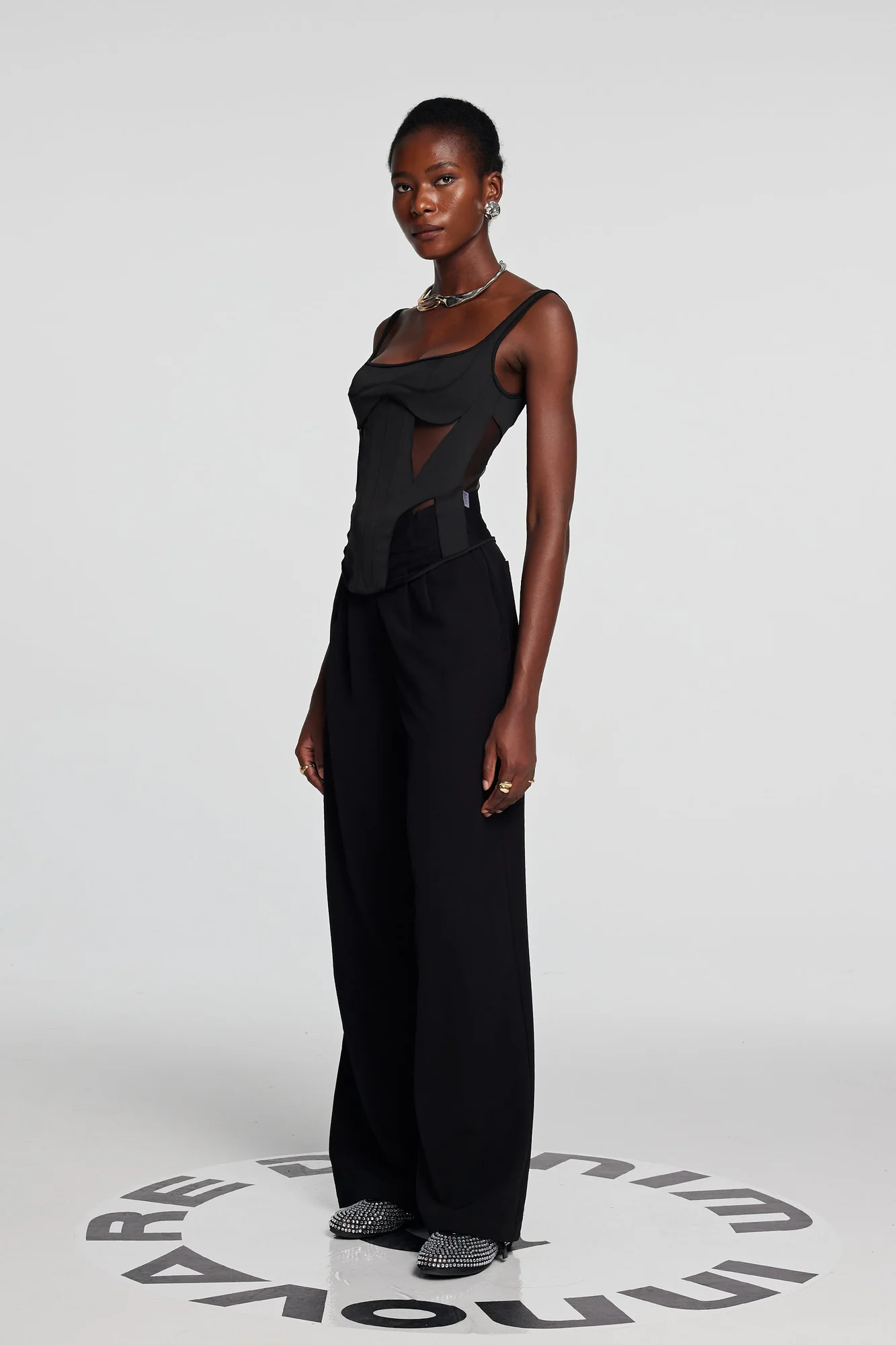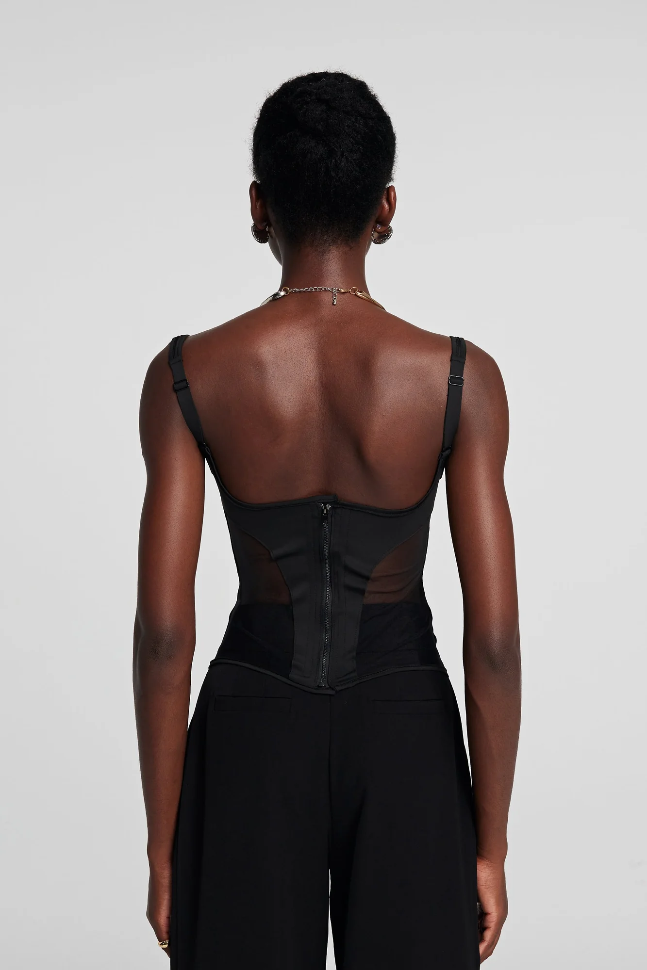 Upgrade your wardrobe with this stylish Black Mesh Corset Top with a see-through design. Expertly crafted from high-quality mesh for a touch of allure, this top features a flattering corset style for a perfect fit. The classic black color adds sophistication, making it ideal for nights out or special occasions. Experience slight stretch comfort with 100% Polyester material. Easy to care for with a gentle machine wash. Color variations may occur due to image lighting. Get the true product color through images (no model shown).