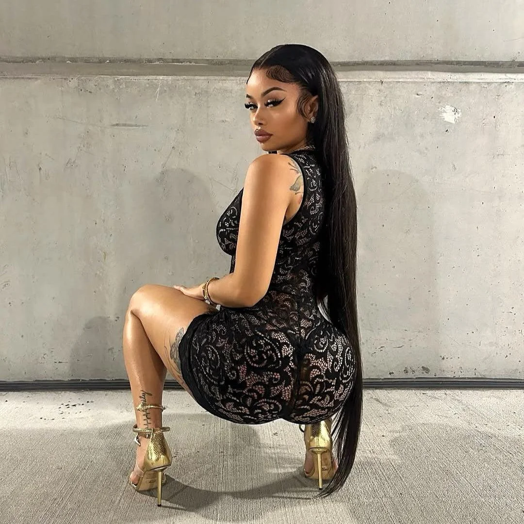 Elevate your style with the Black Mesh Lace-Up Corset Jumpsuit . This sophisticated jumpsuit, crafted from sheer mesh with crystal embellishments and silk detailing, offers a flattering silhouette with structured boning and adjustable satin ties. Perfect for any occasion, pair it with tailored pants or a maxi skirt for a standout look that sparkles. For a personalized fit and exquisite style, this jumpsuit is a must-have in your wardrobe. Order now for a glamorous addition with unparalleled elegance.