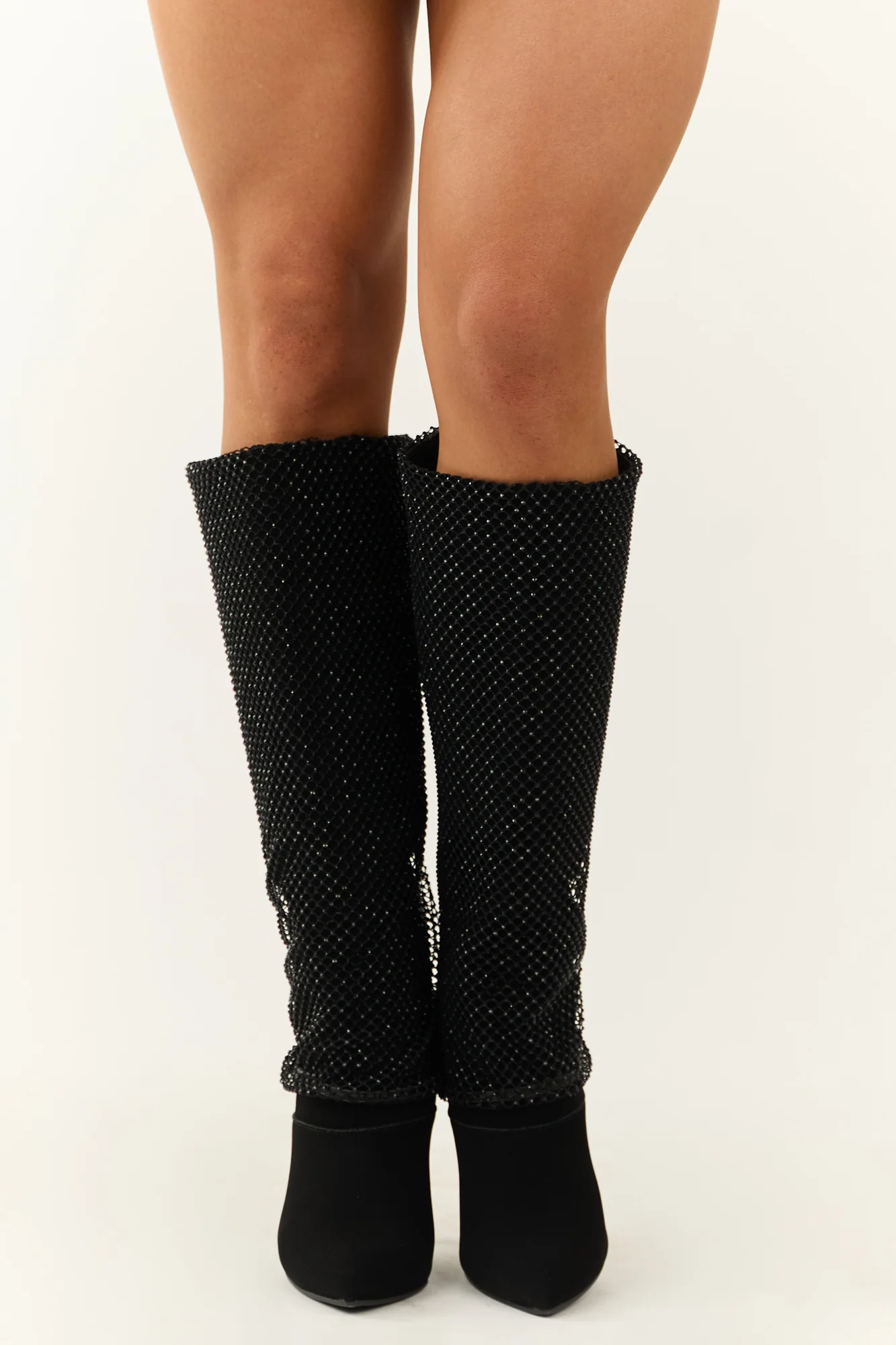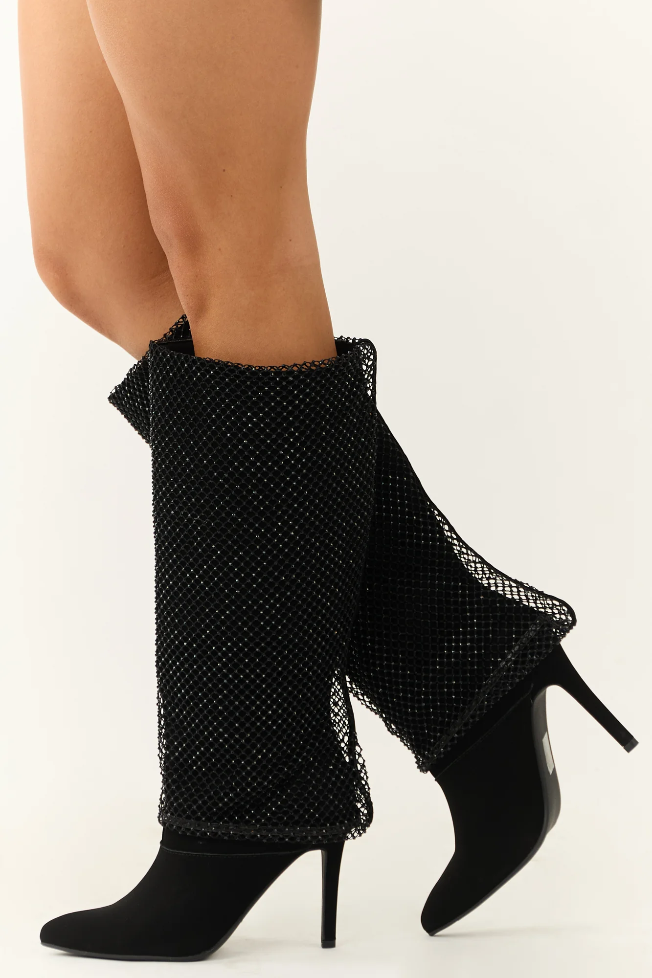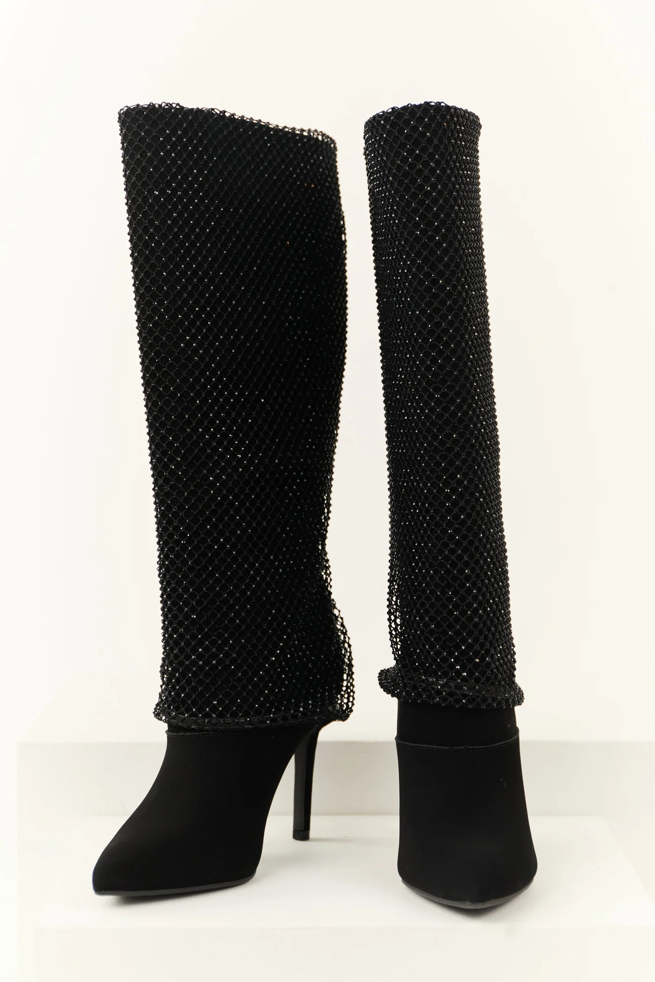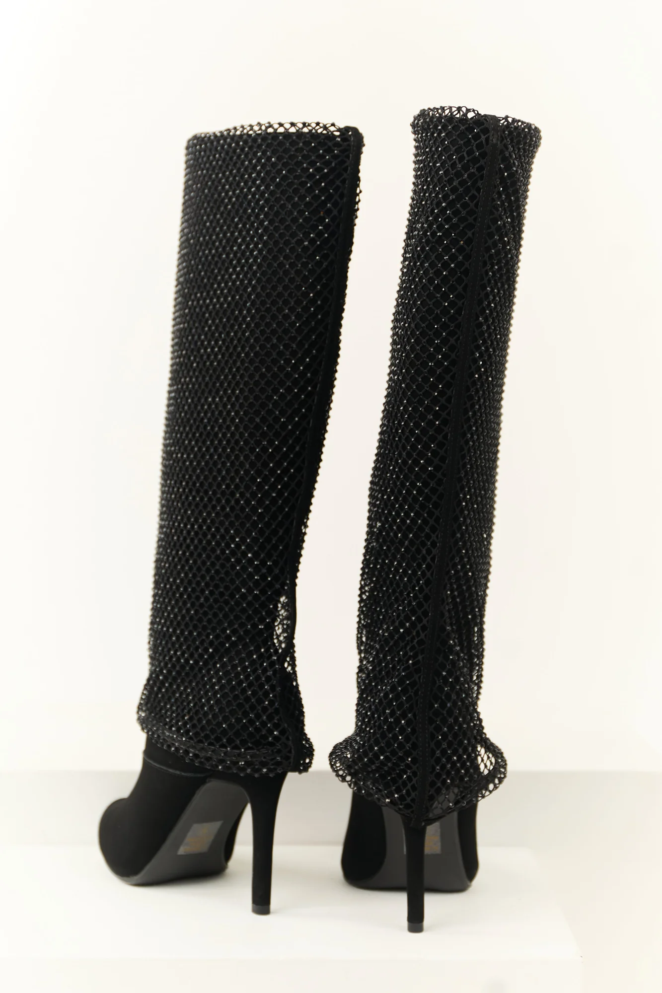 Tags: Black boots, Mesh Overlay Boots, rhinestone accents, Stiletto Boots