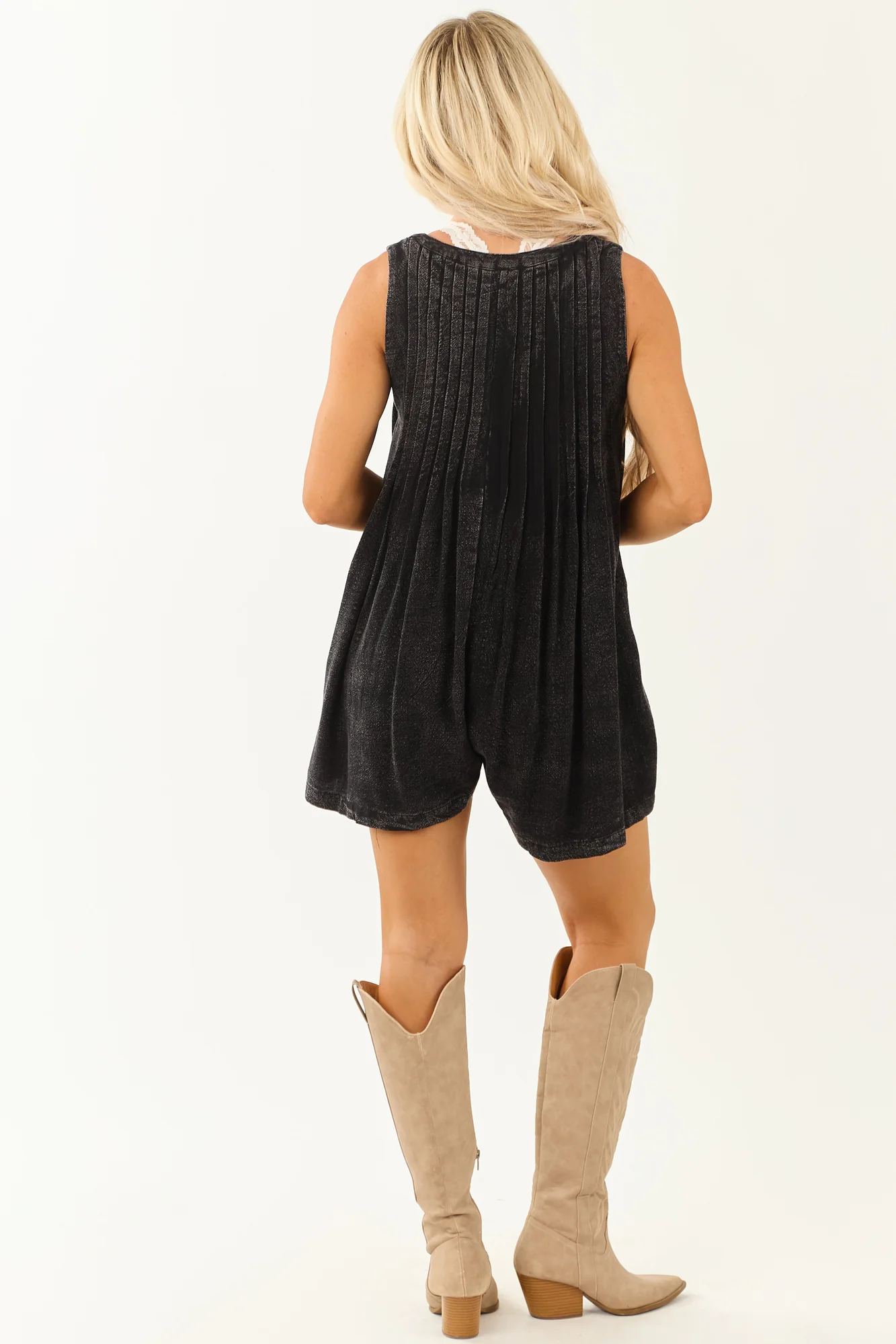 Embrace the boho chic vibe in this mineral wash romper crafted from a premium linen blend. Effortlessly stylish with a wide flowy silhouette, V neckline with tie closure, and hidden side pockets. Perfect for both casual outings and special occasions. Available in sizes XS to XL. Imported. Model is wearing a size Small.