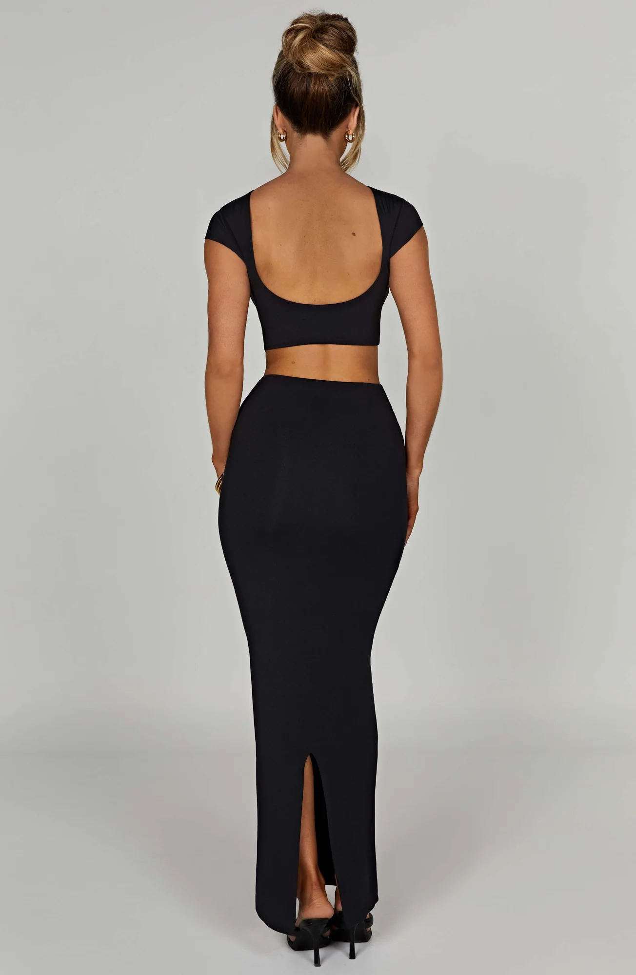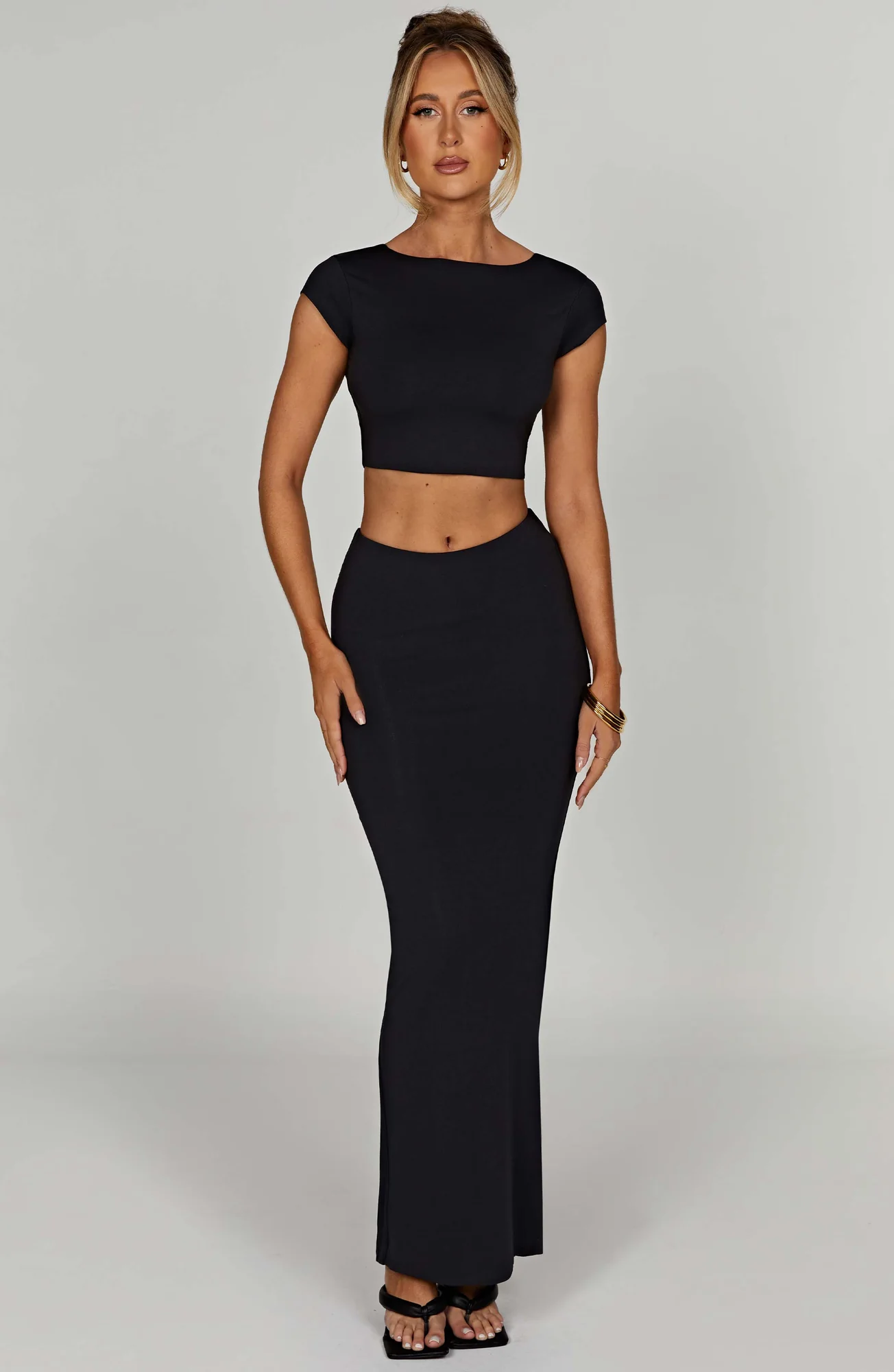 Indulge in the luxury of our Black Modal Crop Top. The buttery soft fabric molds to your shape, offering comfort and style. This double-lined, high-neck design with cap sleeves and a low scoop back provides a second skin feel that moves with your body effortlessly. Elevate your look by pairing it with our Yasmin maxi for a chic ensemble. Embrace the appeal of premium quality with our Anika top. Ideal for various occasions — a wardrobe essential that fits XS to XXL sizes perfectly.