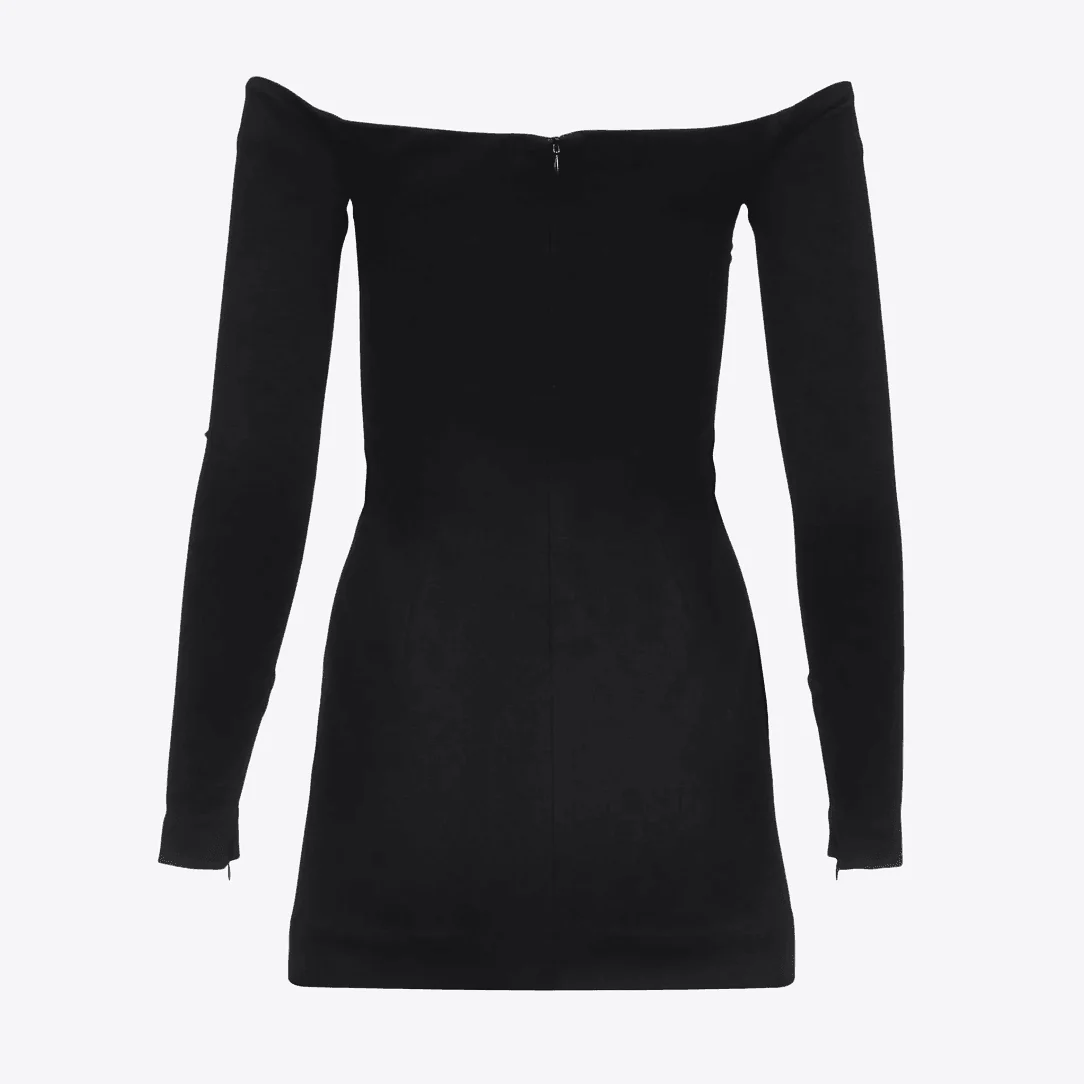 Elevate your style with our Black Off-Shoulder Ruched Bodycon Mini Dress. This chic mini dress features a flattering bodycon fit and long sleeves, perfect for any occasion. The high-quality fabric ensures both comfort and durability. Whether its a party, date night, or special event, this dress enhances your silhouette and personal style. The versatile design transitions effortlessly from casual to formal wear. Turn heads and make a statement with this standout piece. Shop now and experience the ultimate in style and comfort. If you need a different size, were happy to offer a complimentary exchange.