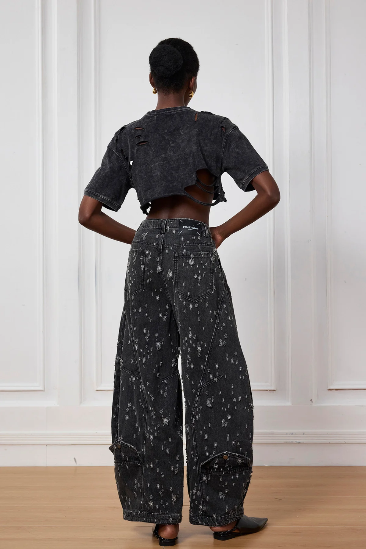 Elevate your look with the daring Harlee Hollow Paperclip Embellished T-Shirt! This edgy black tee features bold paperclip embellishments, adding an adventurous touch to any outfit. Stand out and make a statement effortlessly. Crafted from 100% Polyester with slight stretch for comfort. Care instructions: Hand wash cold. Please note, color may vary due to lighting. Discover the perfect blend of style and attitude with this unique piece.