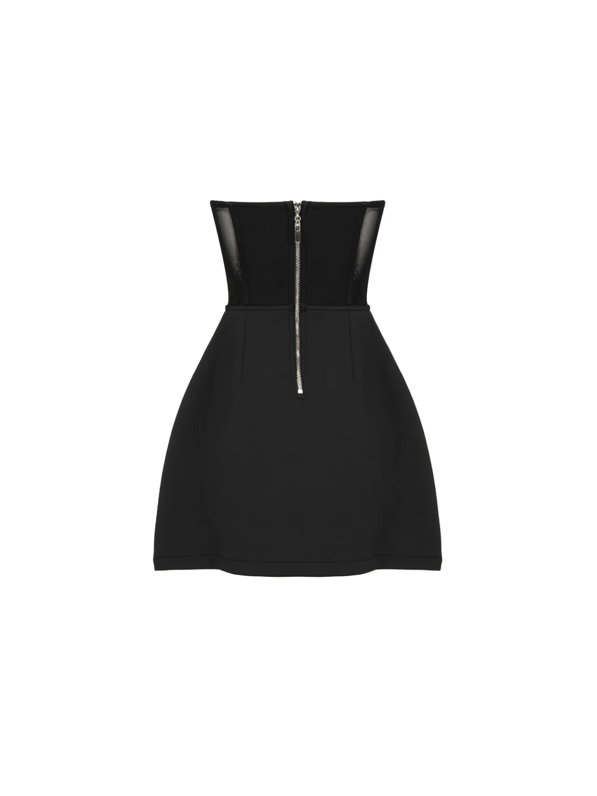 Elevate your style with our Black Patchwork Crystal Heart Mini Dress with charming crystal embellishments. Whether its a party or special occasion, make a statement with its unique patchwork design and comfortable 100% Polyester material. This dress features a zipper closure at the back and a slight stretch for the perfect fit. Feel confident and stand out in this stunning black dress. Please note, color variations may occur due to lighting differences. Get yours now and shine brightly!