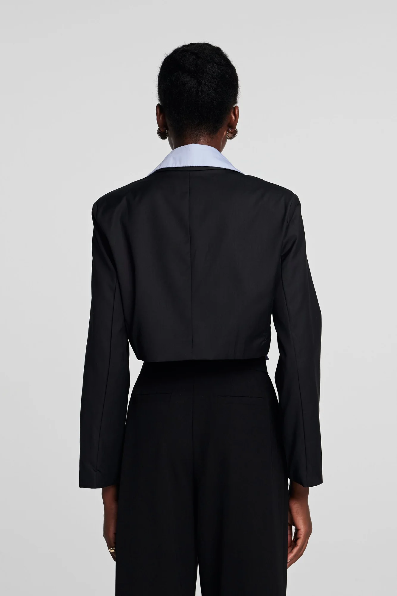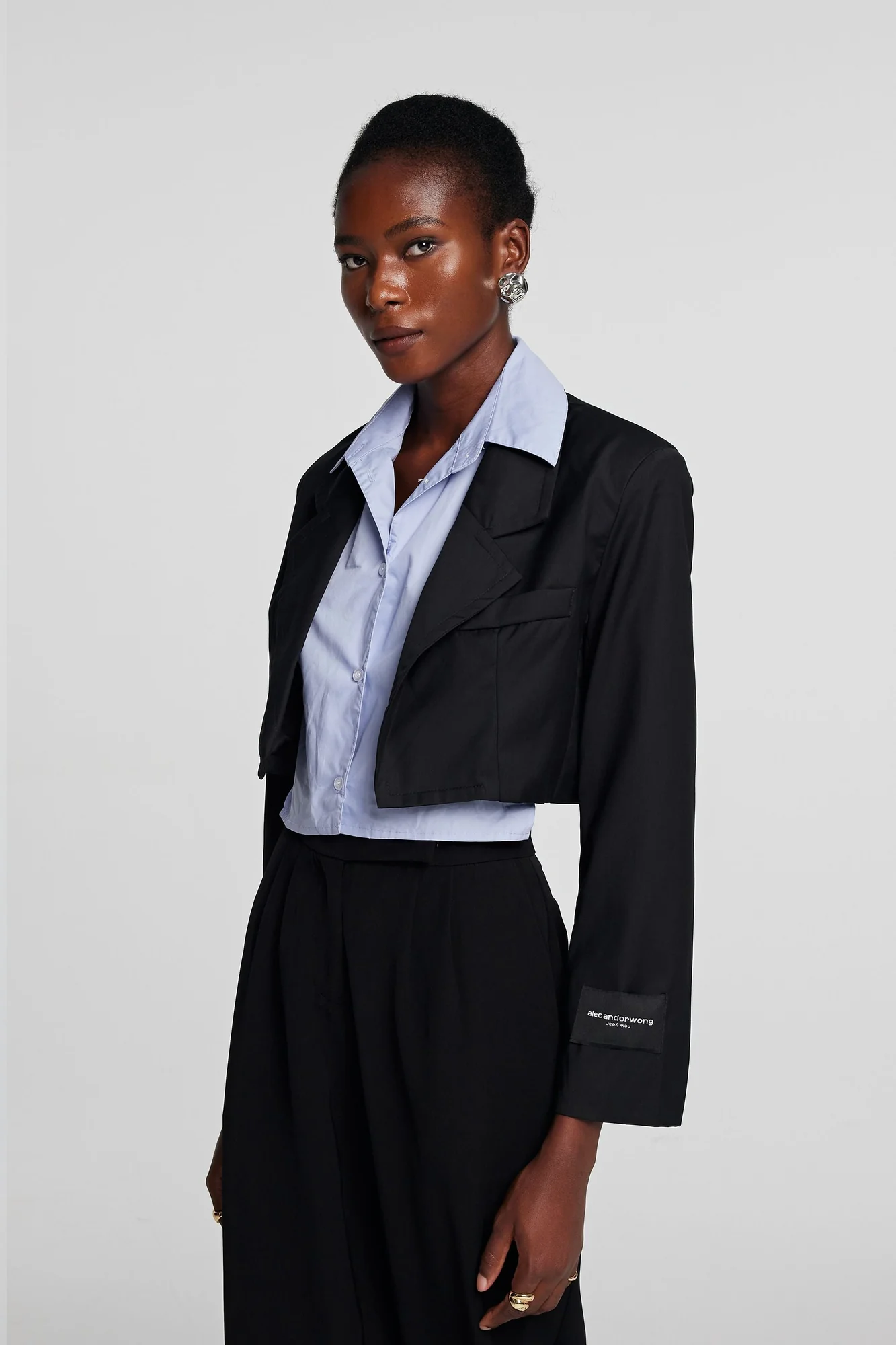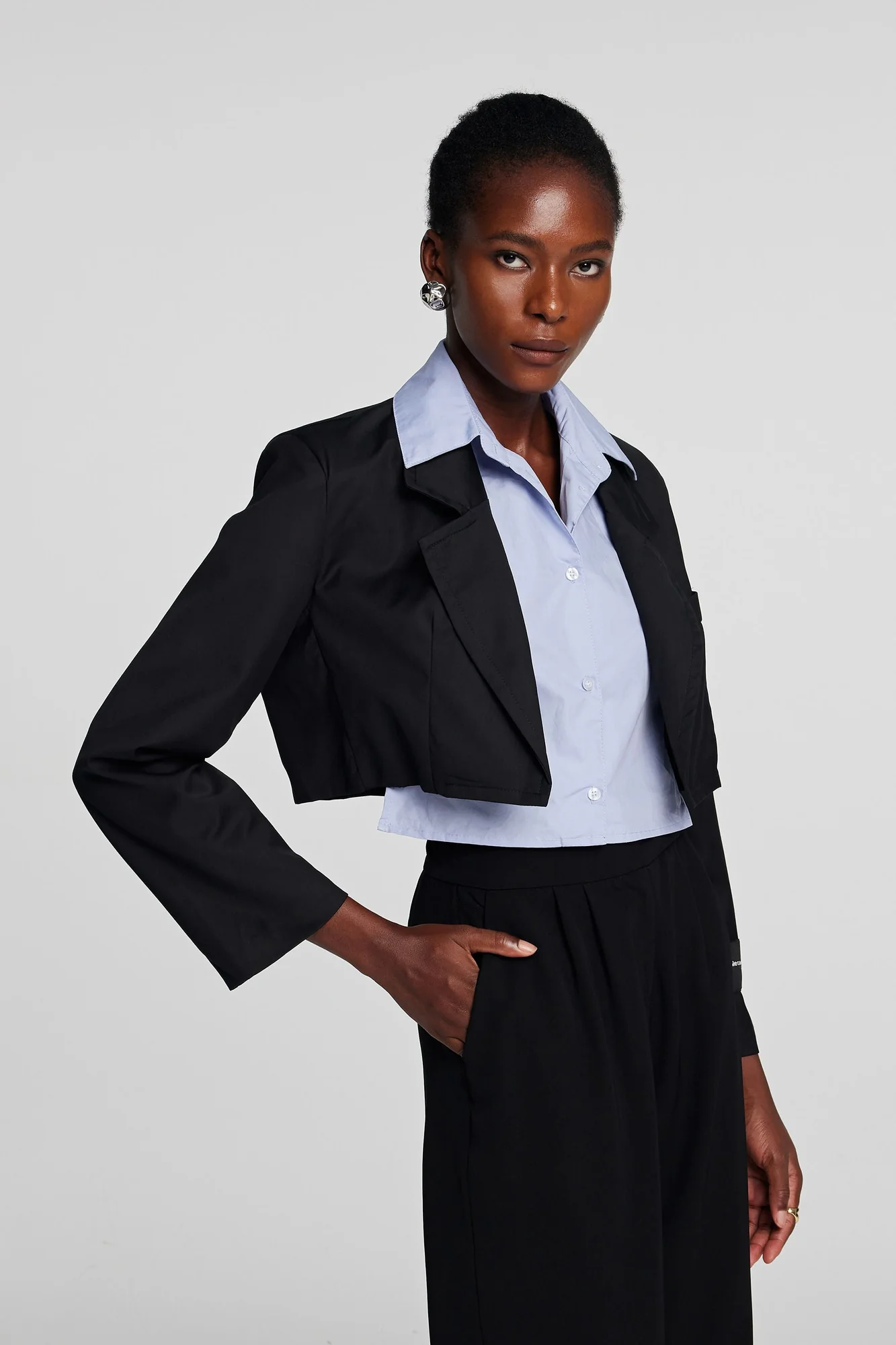 The Black Patchwork Short Blazer Shirt is expertly crafted with deconstructed detailing for a chic and rebellious look. Made from high-quality 100% polyester, this versatile piece offers both style and comfort, suitable for multiple occasions. Elevate your wardrobe with this timeless essential that can be paired effortlessly. Color may vary due to lighting. Clean with a gentle machine wash. Notice: The shirt can be removable, allowing for customizable styling options and versatile looks.
