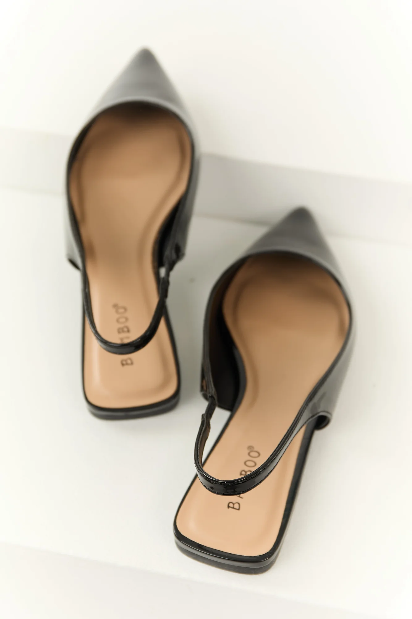 These black patent slingback flats feature a non-stretchy design, pointed toe for sleek style, slip-on convenience, and a slightly cushioned insole for all-day comfort. With a heel height of .25 inches, a circumference of 16 inches, and a strap width of .25 inches, these flats are perfect for daytime and work occasions. Product measurements based on size 8 provide a precise fit and trendy look.