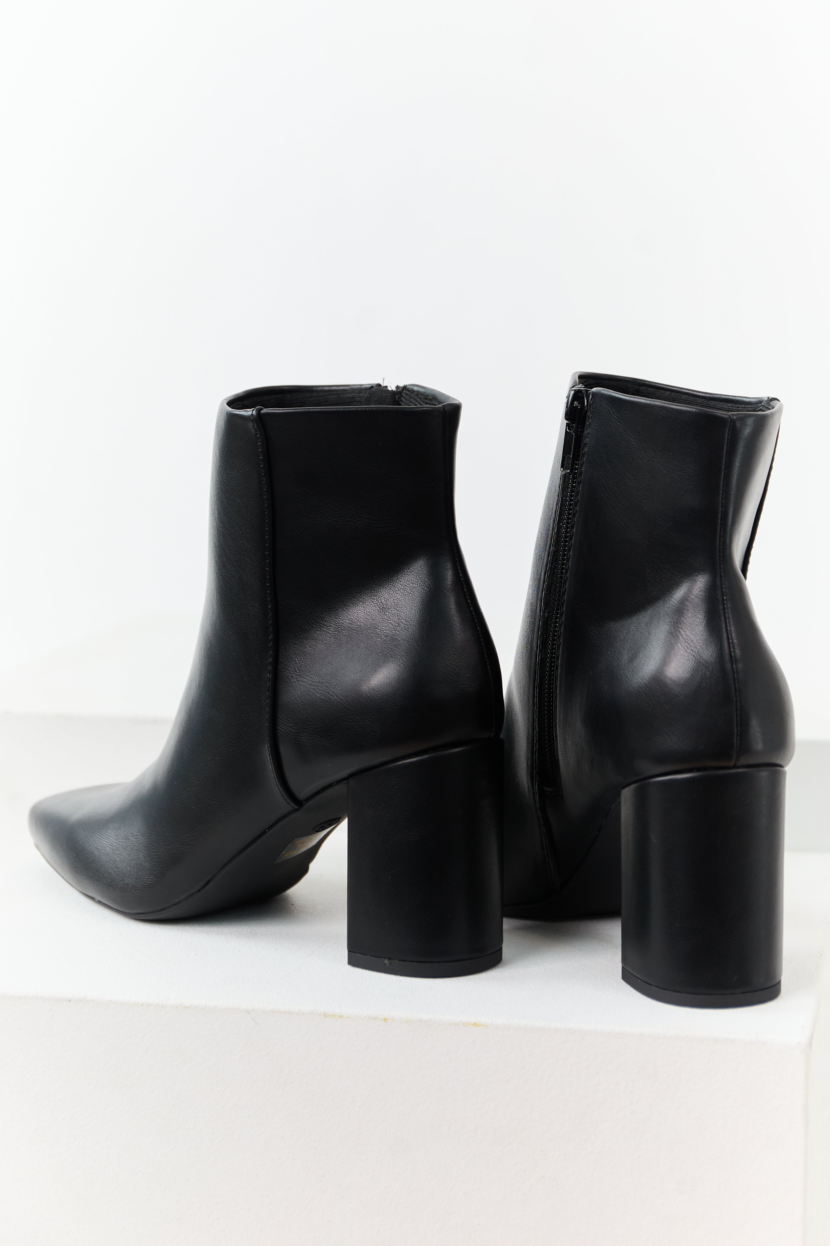 These Black Faux Leather Block Heel Pointed Toe Booties feature a non-stretchy design with a side zipper, pointed square toe, 6shaft, 11circumference, and 3heel height. Imported and measured on size 8, these booties elevate your style effortlessly.