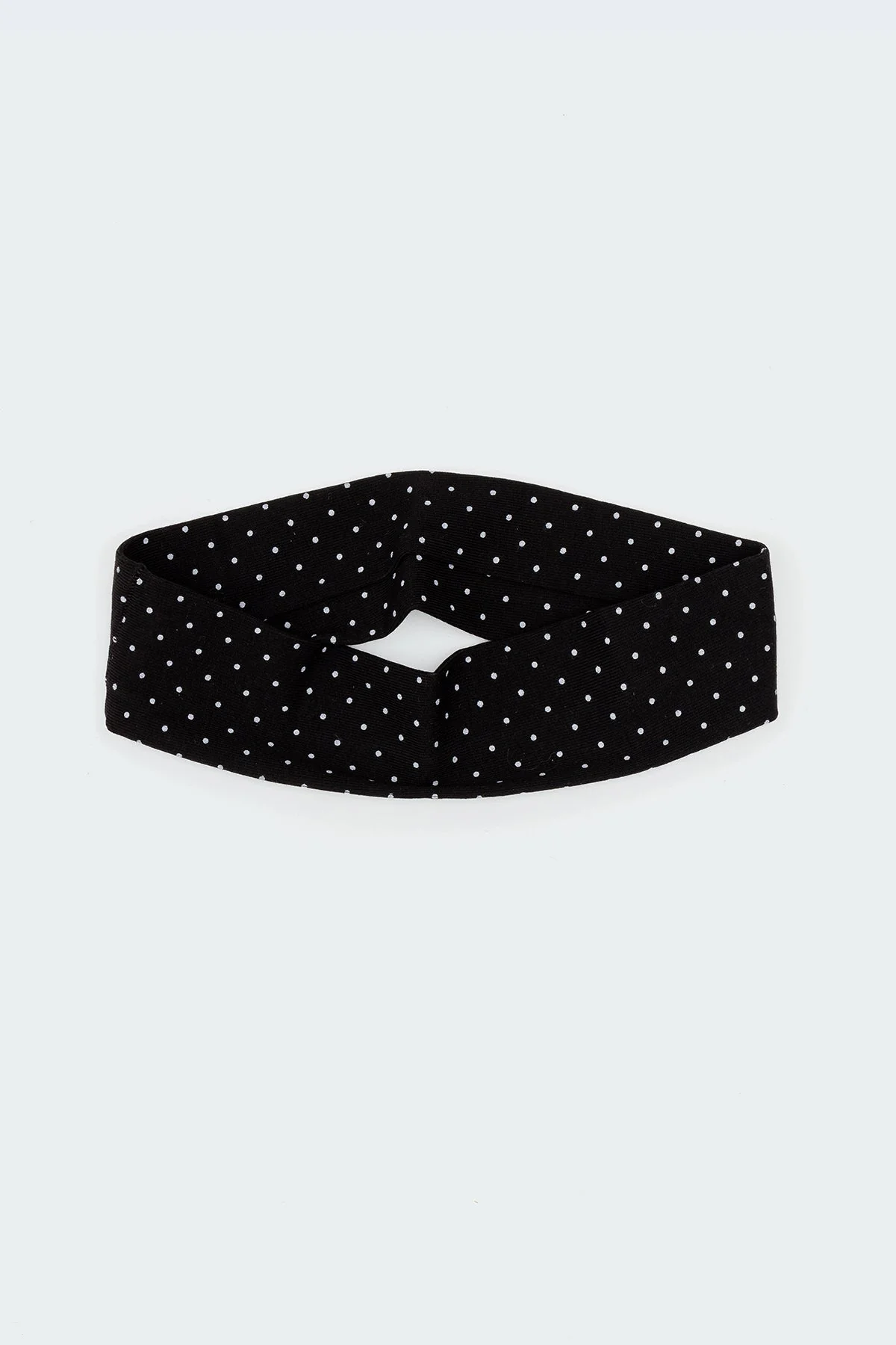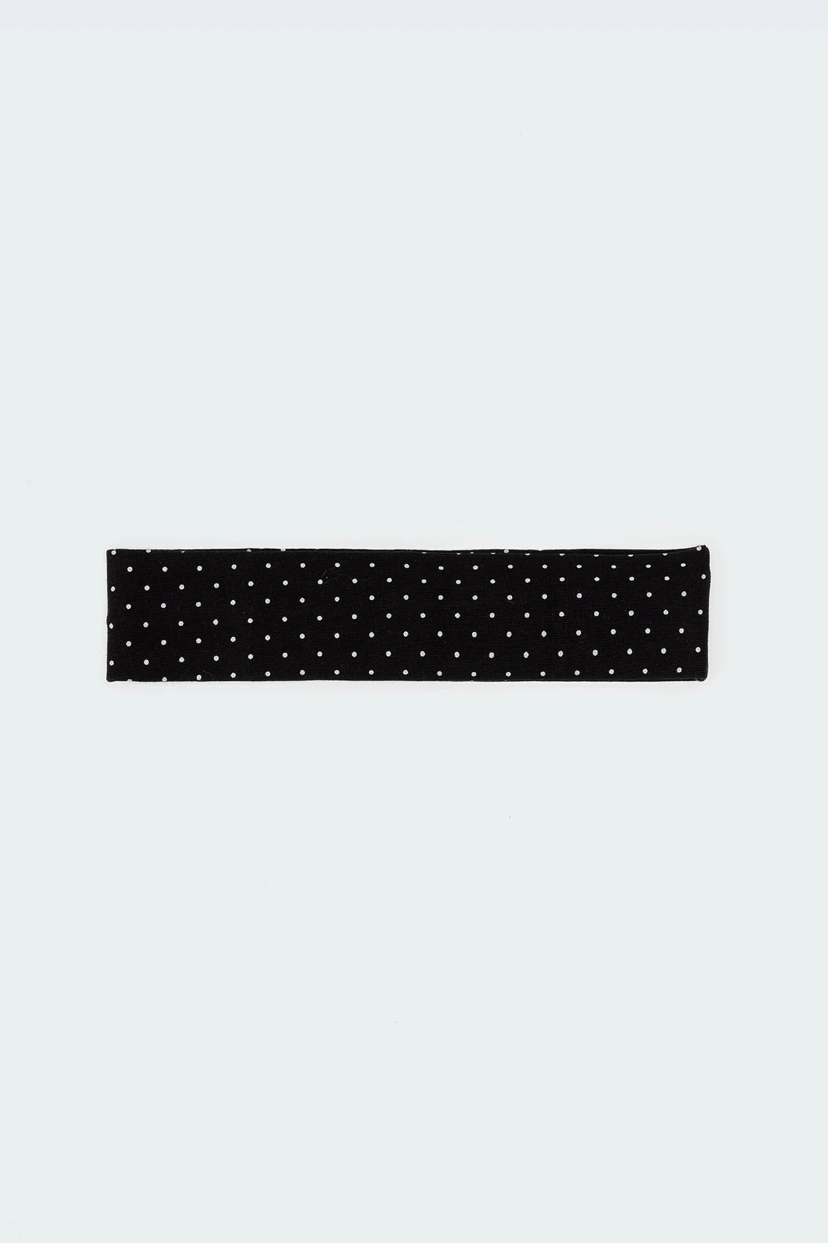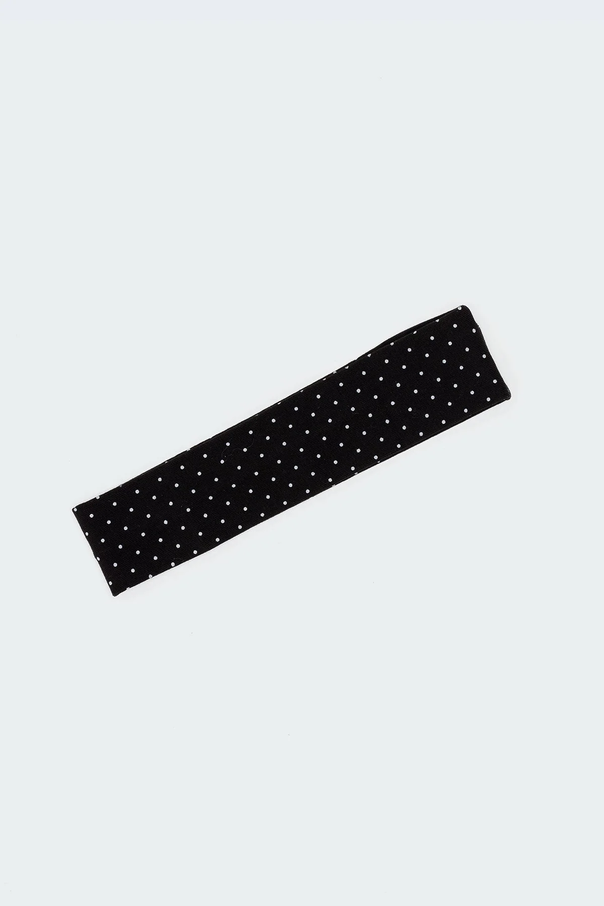 Upgrade your style with this black polka dot headband crafted from premium cotton-spandex fabric. The length of 9.2 inches ensures a comfortable fit. Machine washable for easy care. Add a touch of elegance to any outfit effortlessly!