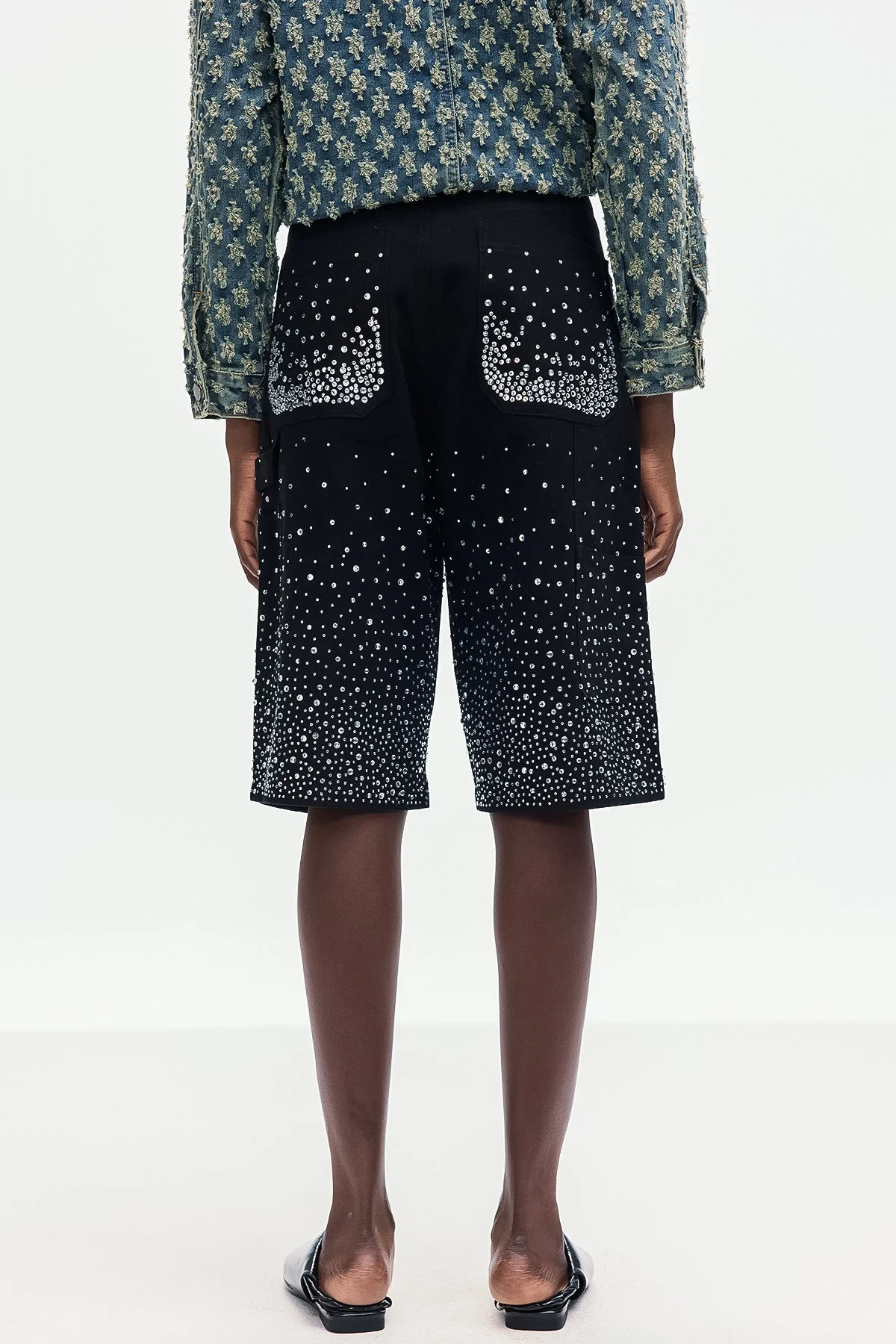 Elevate your denim collection with these versatile Black Rhinestone Embellished Midi Jeans . Expertly crafted for comfort and durability, these jeans feature subtle rhinestone embellishments that add a touch of glamour. The tailored fit enhances your silhouette, making them perfect for both casual and dressier occasions. Whether you aim for an urban edge or understated elegance, these non-stretch jeans offer the perfect balance. Color may vary due to lighting on images. Make a statement with these sleek and stylish jeans today!