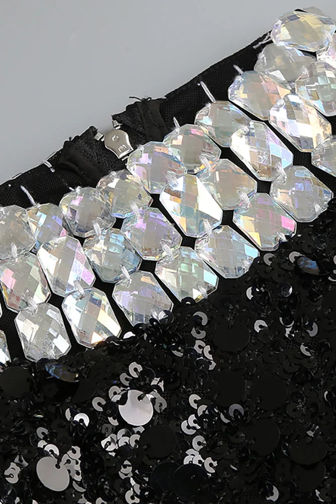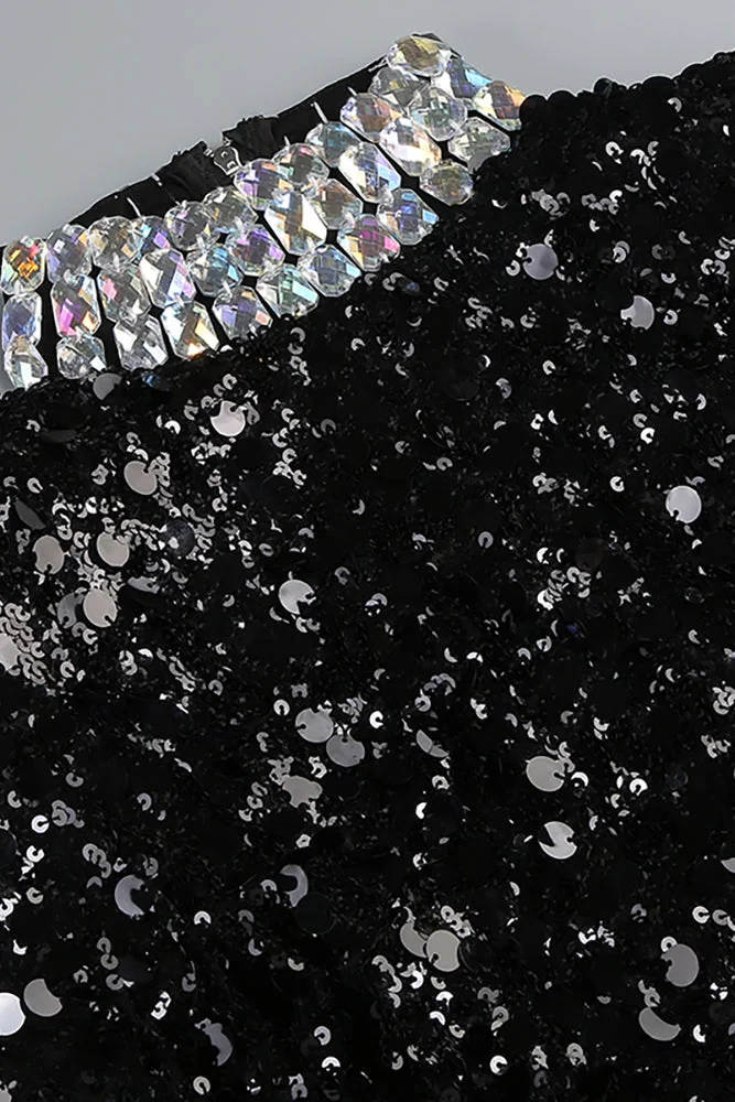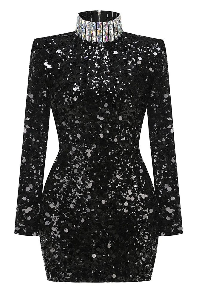 Elevate your style with our Black Rhinestone Sequin Embroidered Mini Dress from Night Novas! This exquisite dress features intricate rhinestone and sequin details for a touch of elegance. The flattering turtle neckline complements the timeless black color. Stand out at any event with this stunning piece that is sure to turn heads wherever you go. Crafted from 82% Polyester and 18% Spandex. Gentle dry clean recommended. Sizes available in S (cm), M (cm), L (cm): Bust 77/30, 81/32, 85/33 – Waist 57/22, 61/24, 65/26 – Hip 76/30, 80/31, 84/33 – Dress Length 79/31, 80/31, 81/32. Please allow for minor measurement discrepancies. Actual product color may vary due to lighting. Additional images without models showcase true colors.