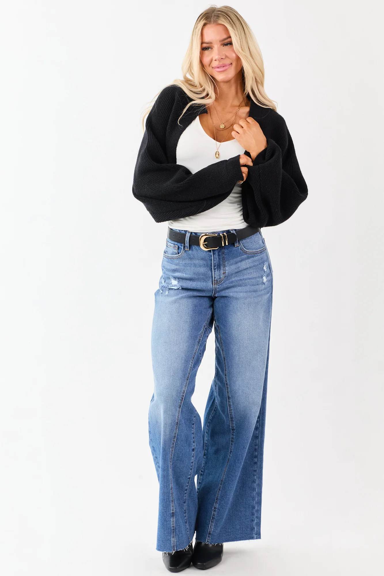 Embrace a relaxed silhouette with this cropped shrug cardigan featuring stretchy ribbed knit, banded trim, and balloon dolman sleeves. Stay cozy and stylish with the open front design. Made of 42% Acrylic, 30% Polyester, and 28% Nylon. Perfect for fall and winter seasons. Imported.