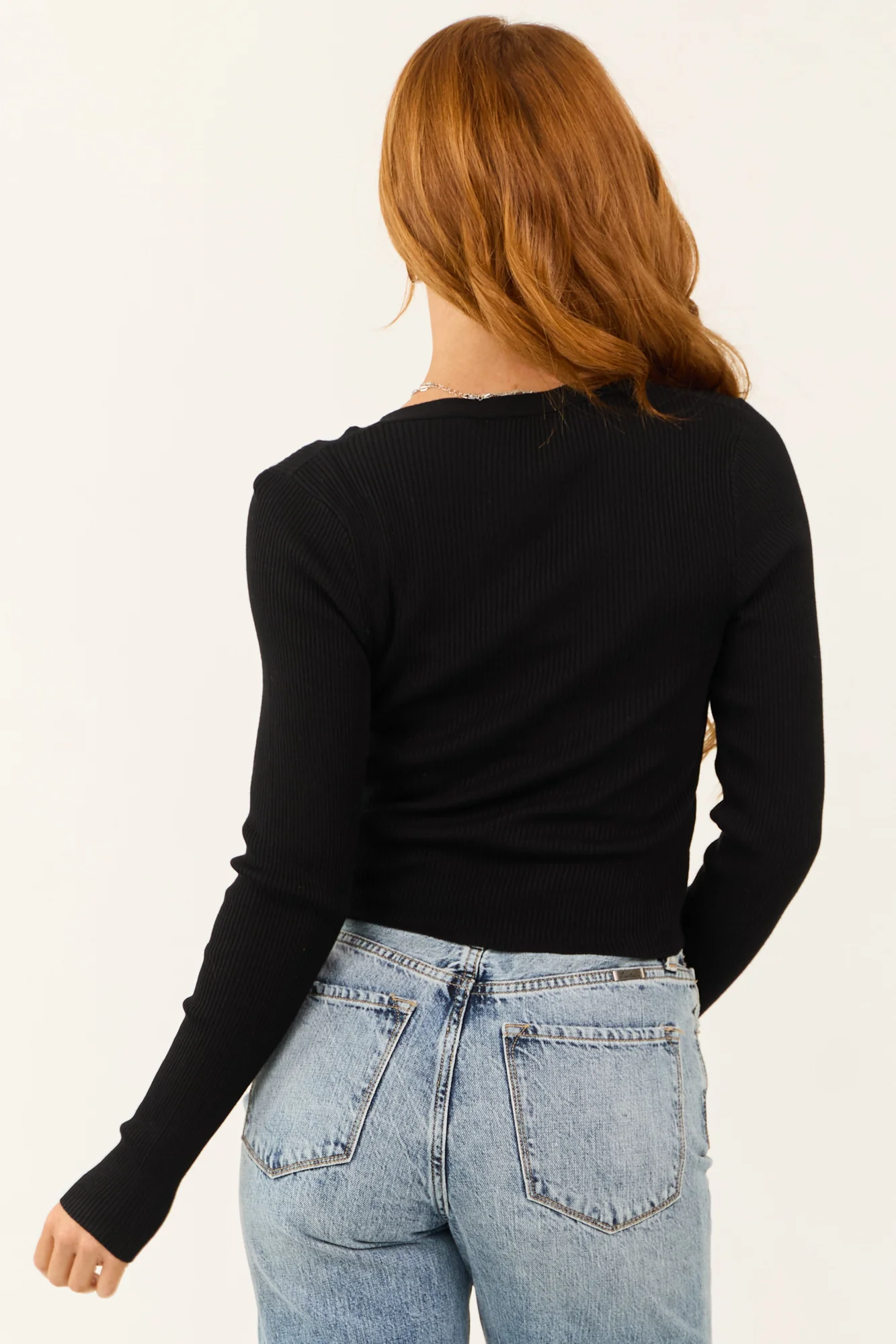 Stay cozy and chic in this black ribbed knit cardigan featuring a contrast tie detail in eggshell shade. Made of super stretchy material, this cardigan comes in XS, S, M, and L sizes with sleeve lengths from 23″ to 26″ and a length range of 19.75″ to 20.5″. The unlined design is crafted from 71% Rayon and 29% Nylon, making it perfect for fall and winter. Hand wash cold, dry flat, iron if needed. Model height 55″ is wearing size XS.