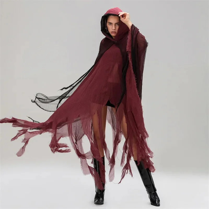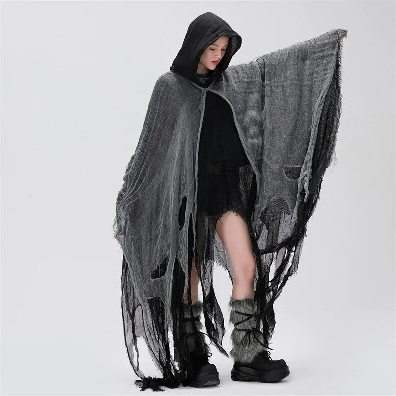 Introducing our one-of-a-kind Limited Edition Black Ripped Hooded Cape, created to turn heads effortlessly. Made from a luxurious blend of Premium Cotton and Polyester, this cape exudes high-quality craftsmanship. Elevate your style with the captivating details of this Black Ripped Hooded Cape thats designed for ultimate comfort and style. Embrace the unique appeal and feel empowered with every wear. Size Chart available for your convenience. For a truly exceptional purchase experience, trust The End Cult for unparalleled satisfaction.