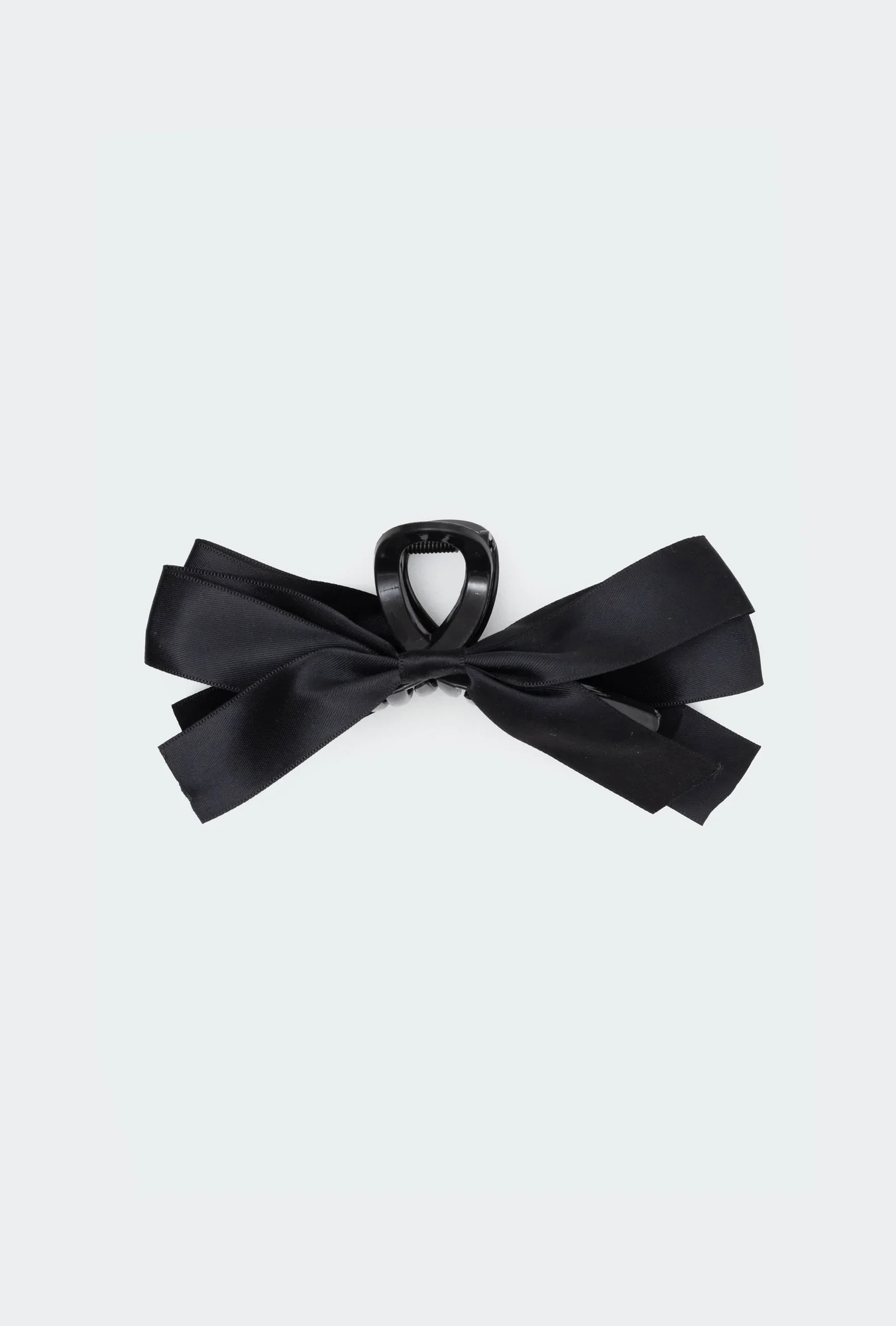 Enhance your hairstyle with this elegant black satin hair clip featuring a stylish bow design. Made from high-quality polyurethane, this accessory measures approximately 4.3 inches long, adding a touch of sophistication to any look. Elevate your hair styling with this versatile and charming hair accessory that is perfect for both women and girls.