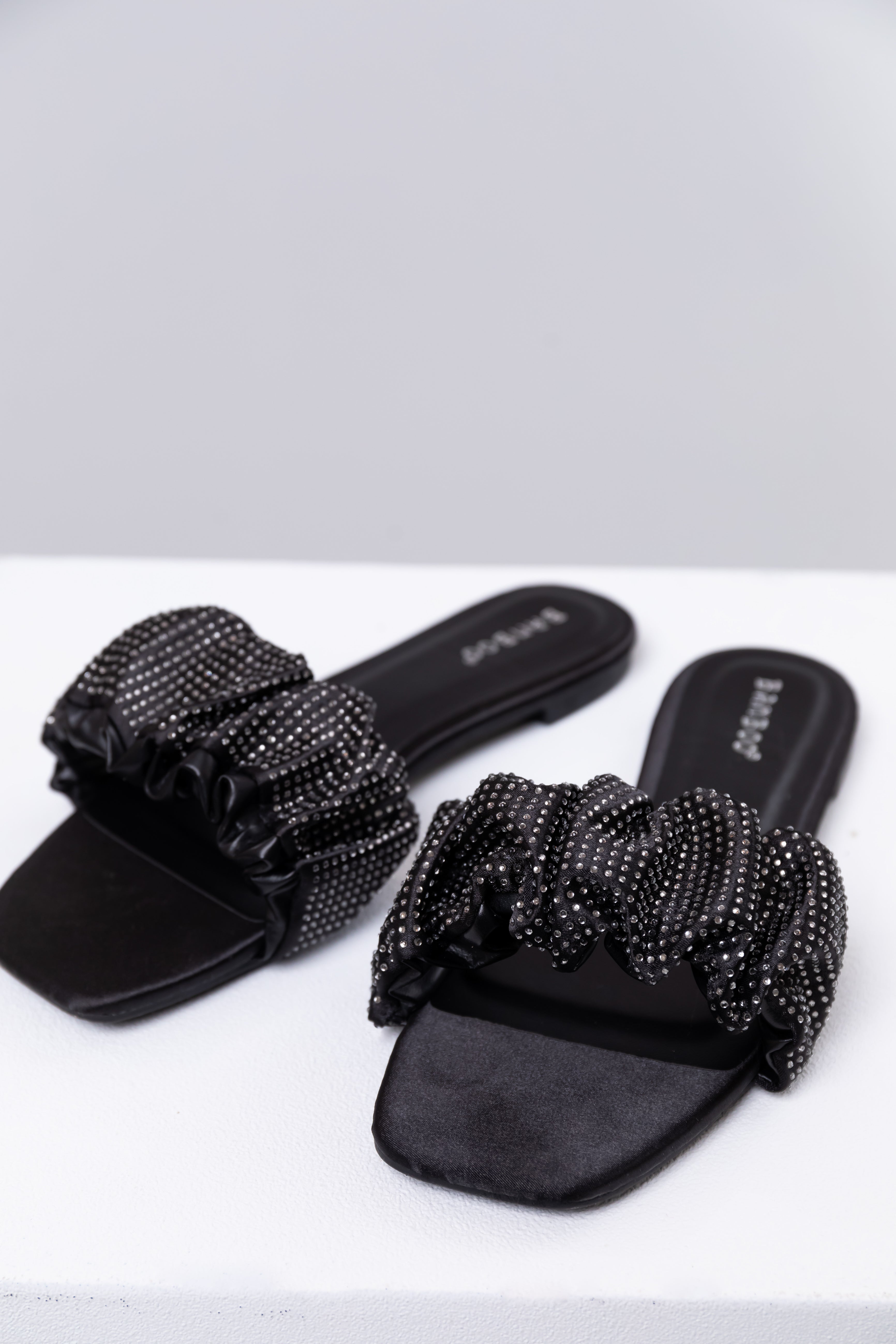 Step out in style with these sophisticated Black Satin Rhinestone Strap Sandals. Featuring a square toe design and a comfortable .5″ heel, these elegant slip-on shoes are perfect for any occasion. The shaft measures 2″ with a strap length of 2.25″ and a circumference of 10.5″, making them a chic addition to your wardrobe. Add a touch of glam to your look with these stunning rhinestone embellishments. Product measured on size 8. Available in multiple sizes.