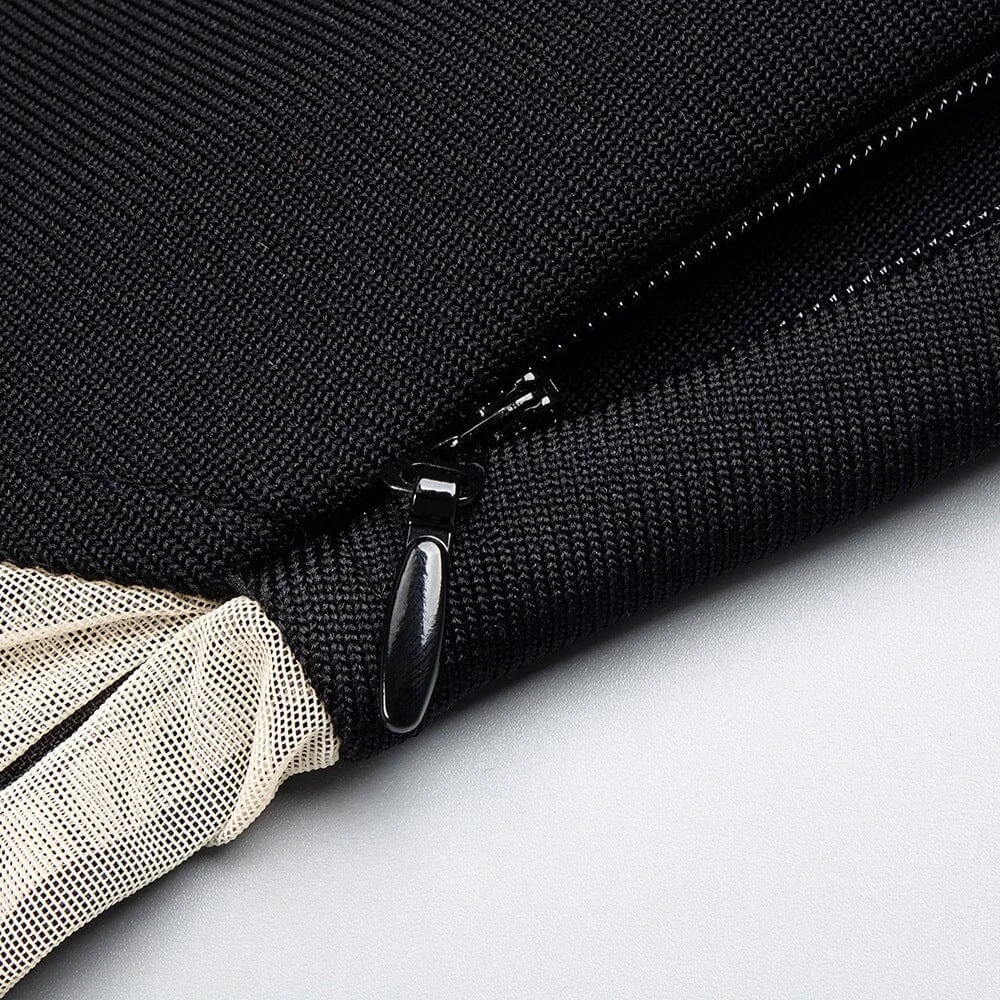 Make a statement with the Black Scallop Mesh Insert Maxi Dress from Night Novas. This exclusive piece features intricate illusion mesh and delicate eyelash lace trim on the neckline, providing an elegant touch. Designed to accentuate your figure with a slim fit and flow gracefully as you move, this dress is perfect for summer soirees or vacations. Dry clean recommended. Please note that colors may vary slightly due to lighting. Refer to our size chart for the best fit.