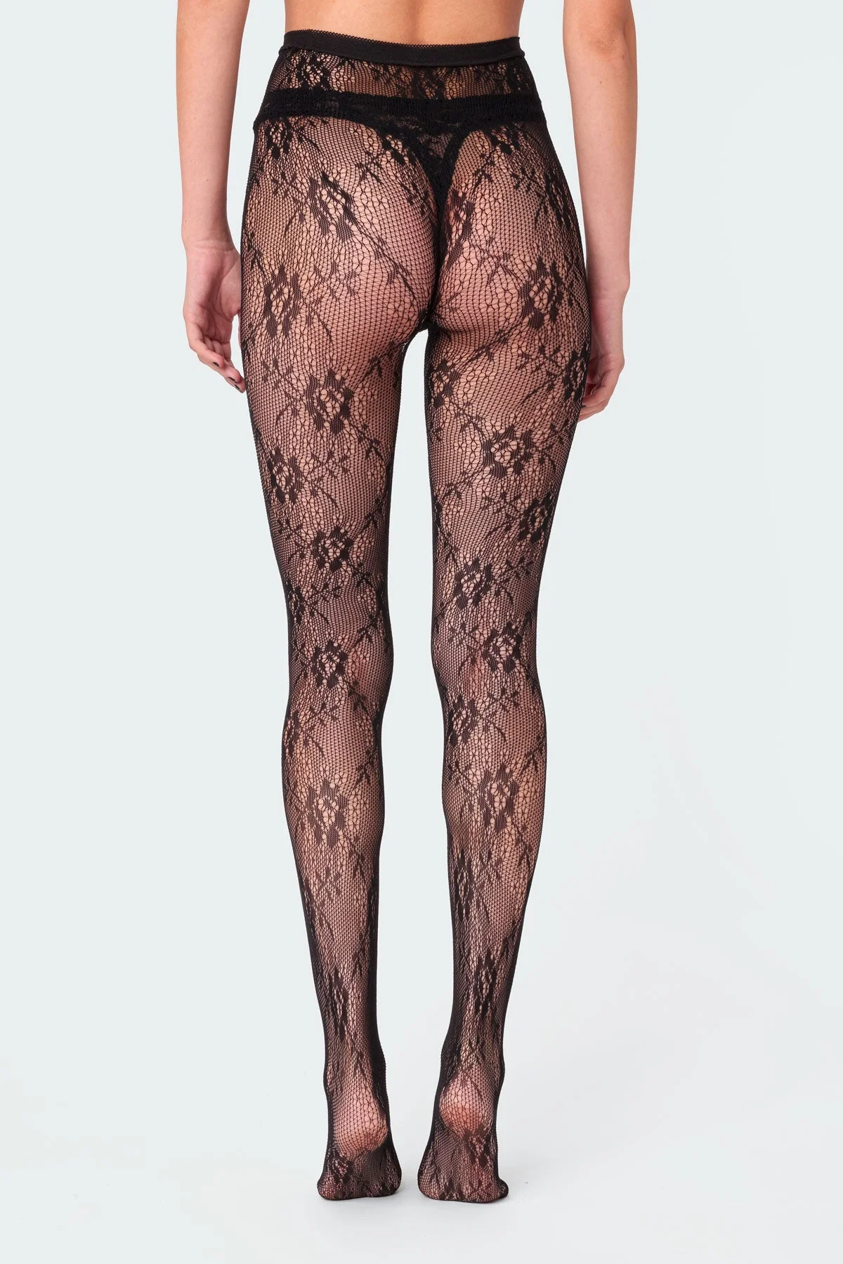 Indulge in elegance with our black sheer lace tights made from high-quality polyester and spandex. Designed for comfort and style, these tights feature a length of 29.9 inches and a width of 10.2 inches. Hand wash care instructions ensure longevity.