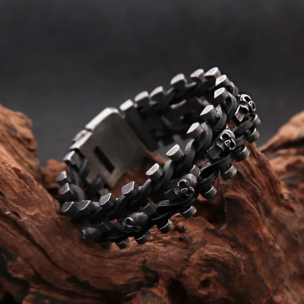 Discover the exclusivity of our Limited Edition Black Skull Metal Bracelet. Crafted from premium metal, this showstopper piece adds charismatic diversity to any mans wardrobe. With a length of 23cm, it exudes high-quality craftsmanship. Rest assured of 100% satisfaction with your purchase . Get in touch with us for a delightful shopping experience!