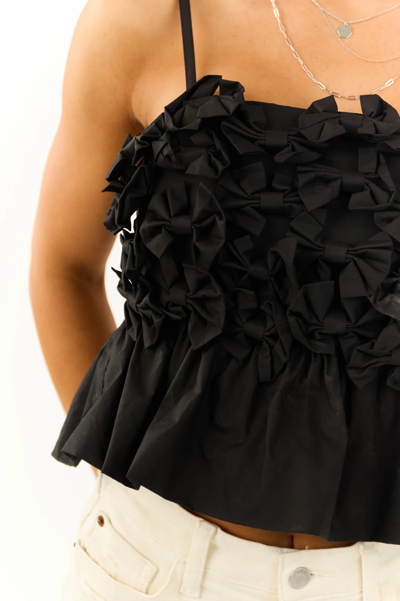 This Black Smocked Back Cotton Tank Top in sizes S, M, and L is the perfect addition to your wardrobe. Made of 100% cotton, it features a peplum style with a ribbon bow accent. The square neckline and sleeveless design make it ideal for day or night outings. The non-stretchy woven fabric ensures a flattering fit, while the adjustable straps add versatility. Stay cool and stylish all summer by pairing it with your favorite bottoms. Remember to hand wash in cold water, lay flat to dry, and warm iron if needed.