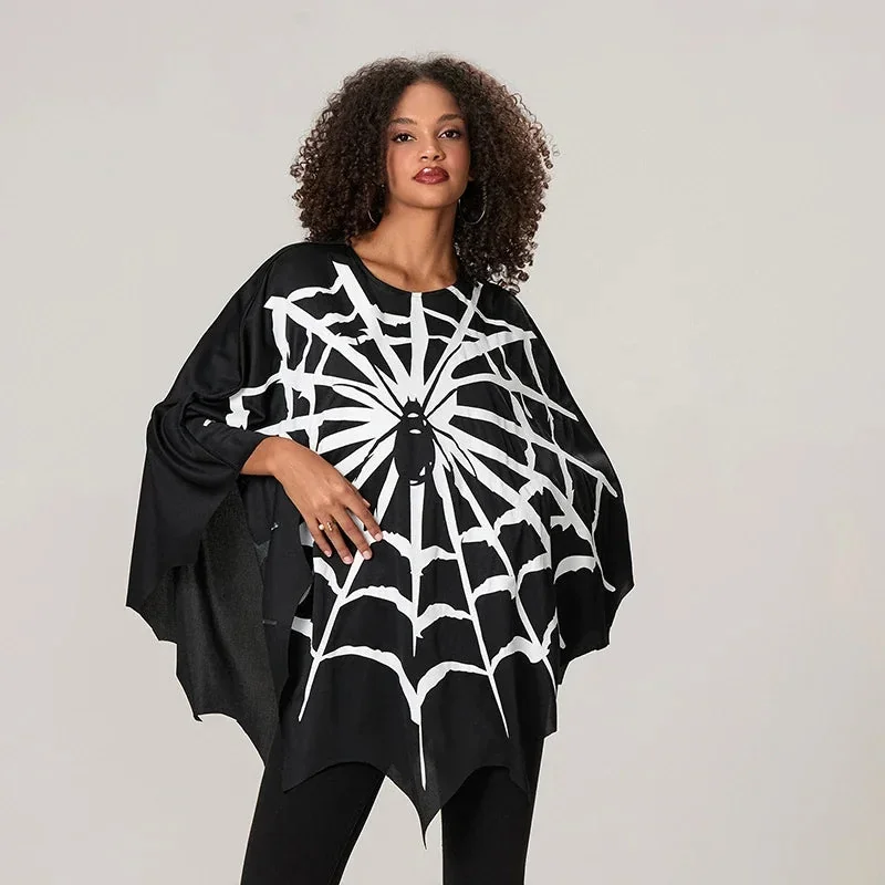 Introducing our exquisite Limited Edition Black Spider Web Cape, a true attention-grabber made from a luxurious blend of Premium Cotton and Polyester. Elevate your style with this unique cape that adds a touch of mystery and flair to any outfit. This Womens Spider Web Cape in Black is designed to turn heads and make a statement. With a generous one-size fit, this high-quality cape ensures comfort and style. Feel empowered and stylish with this captivating Womens Black Spider Web Cape. Take a look at our size chart for detailed measurements. At The End Cult, our priority is your satisfaction. Reach out to us for any assistance.