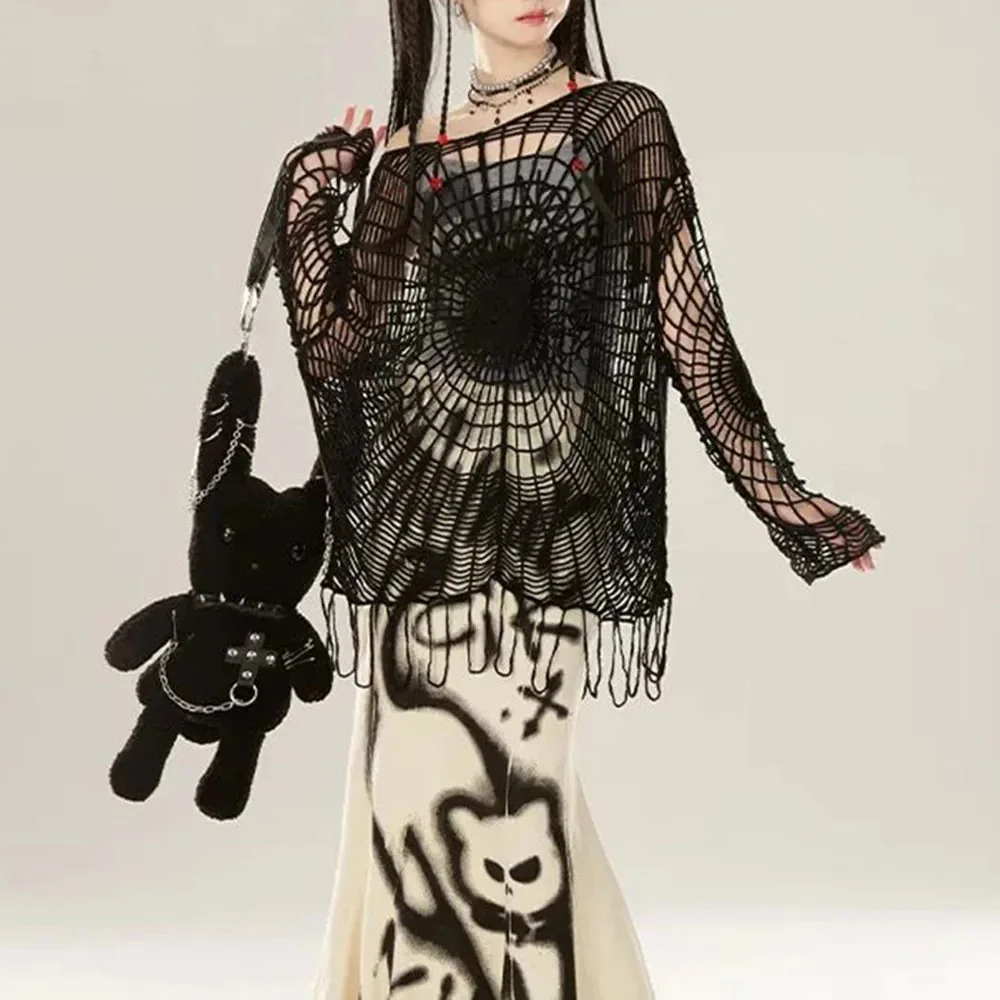 Discover our exclusive limited edition Black Spider Web Cotton-Polyester Blend Womens Top, a unique statement piece designed to turn heads. Crafted from a premium blend of cotton and polyester, this high-quality top combines style and comfort effortlessly. Perfect for any occasion, exude chic elegance in this trendy Spider Web Top for women. Explore our detailed size chart for a perfect fit. Embrace ultimate satisfaction with In The End Cult.
