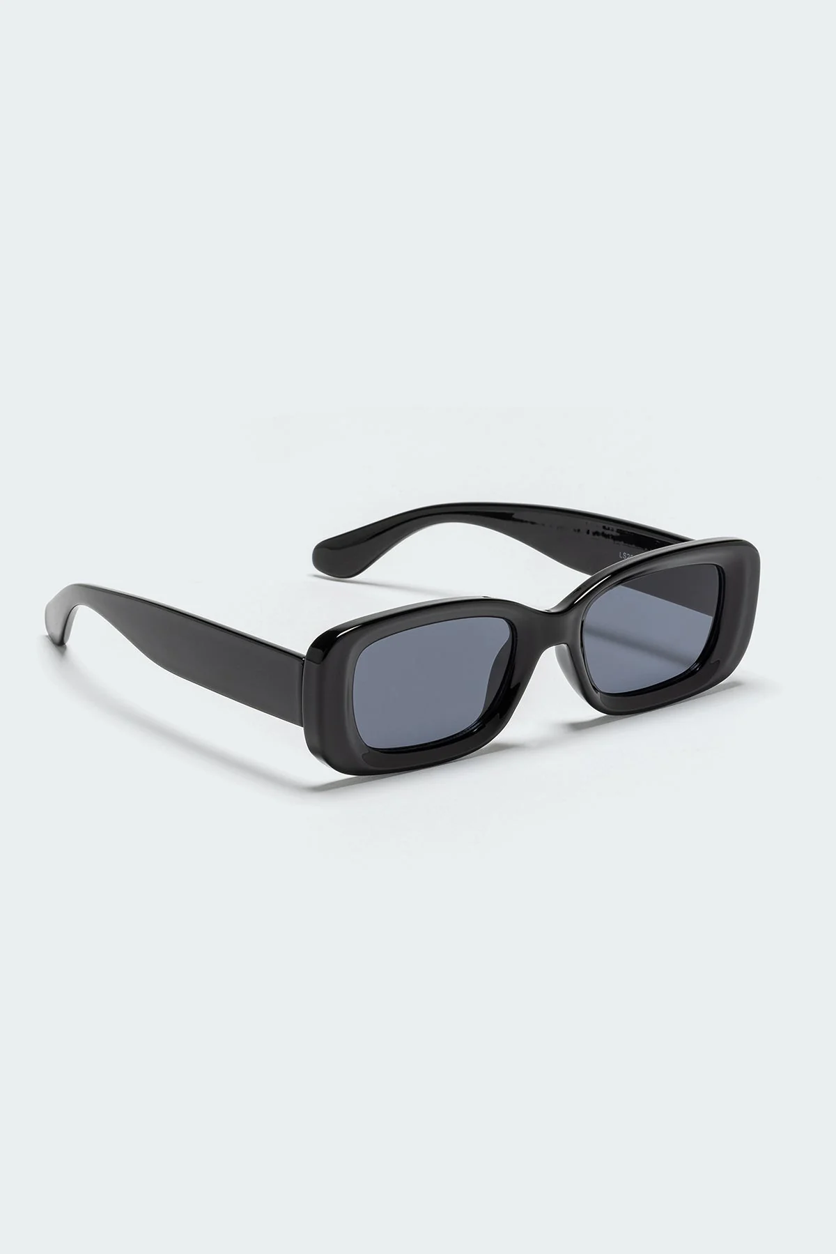 Discover the charm of our Black Square Sunglasses with UV-protected lenses. The Polycarbonate frame ensures durability while providing a comfortable fit for extended wear. Enhance your style with these versatile sunglasses offering a Frame Width of 5.4 inches, Lens Height of 0.9 inches, and Arm Length of 5.5 inches. Keep them looking fresh by gently wiping with a soft cloth after adventures under the sun.