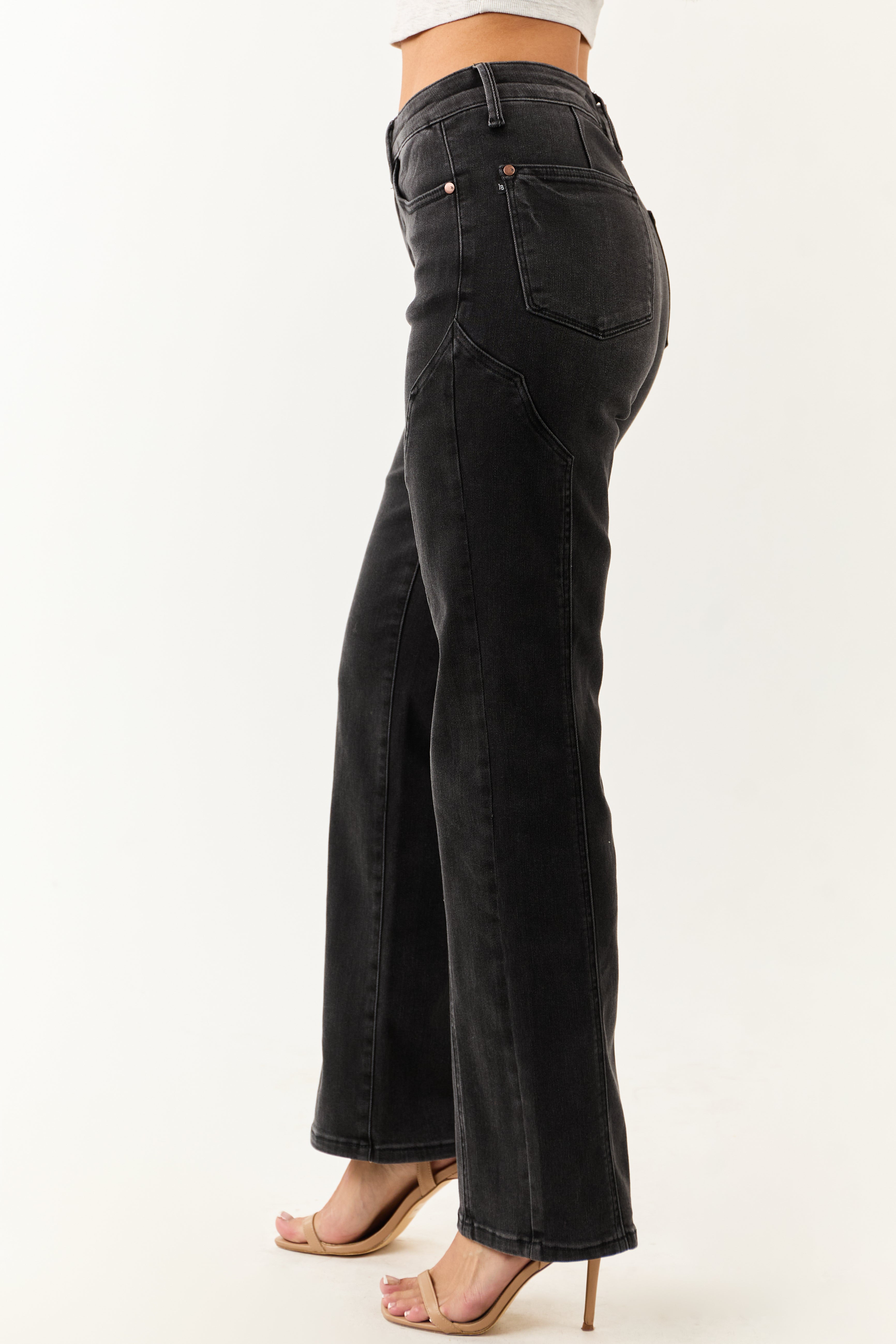 Upgrade your wardrobe with these black washed jeans . Made with stretchy denim for comfort and style, featuring high rise, zipper fly, 5 pockets, and belt loops. The trendy western seam details add a touch of flair. These versatile jeans are perfect for any occasion. Available in various sizes. Model is 59″ and wearing size 3.