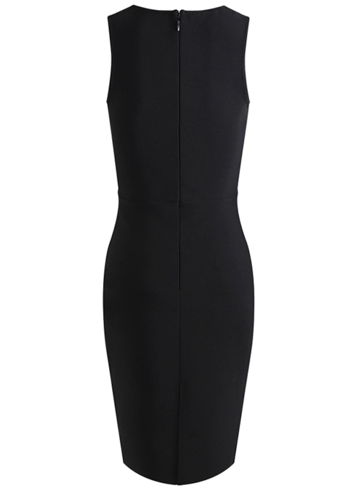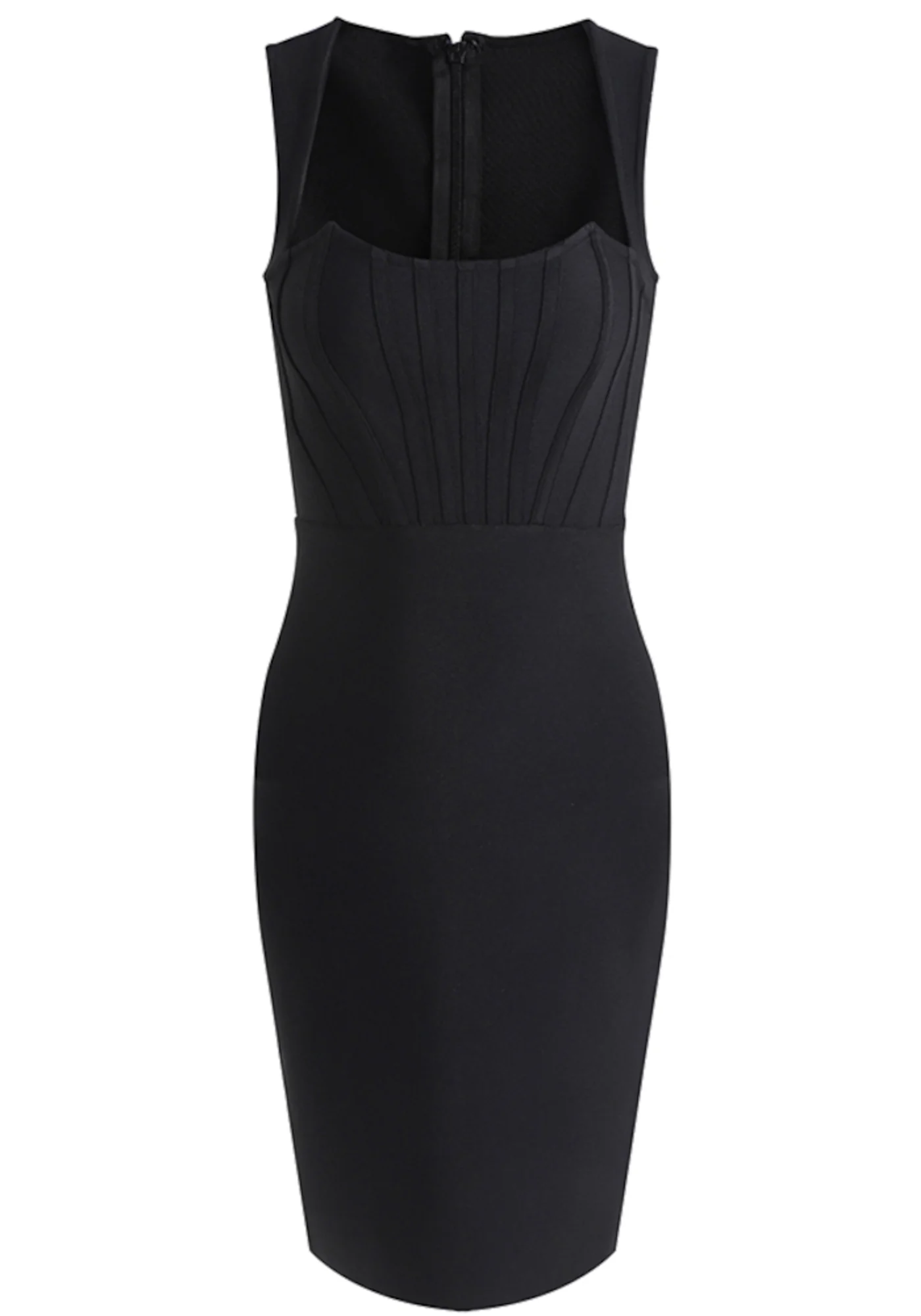Upgrade your wardrobe with our Black Structured Sweetheart Neckline Midi Dress. Made from 90% Rayon, 9% Nylon, and 1% Spandex for durability and elasticity. Features a concealed back zipper for easy wear. Crafted with top-quality anti-wrinkle rayon and high elasticity for a perfect fit. Carefully sewn with a YKK zipper for long-lasting use. Maintain its beauty with gentle dry cleaning. Enhance your style with this elegant midi dress!
