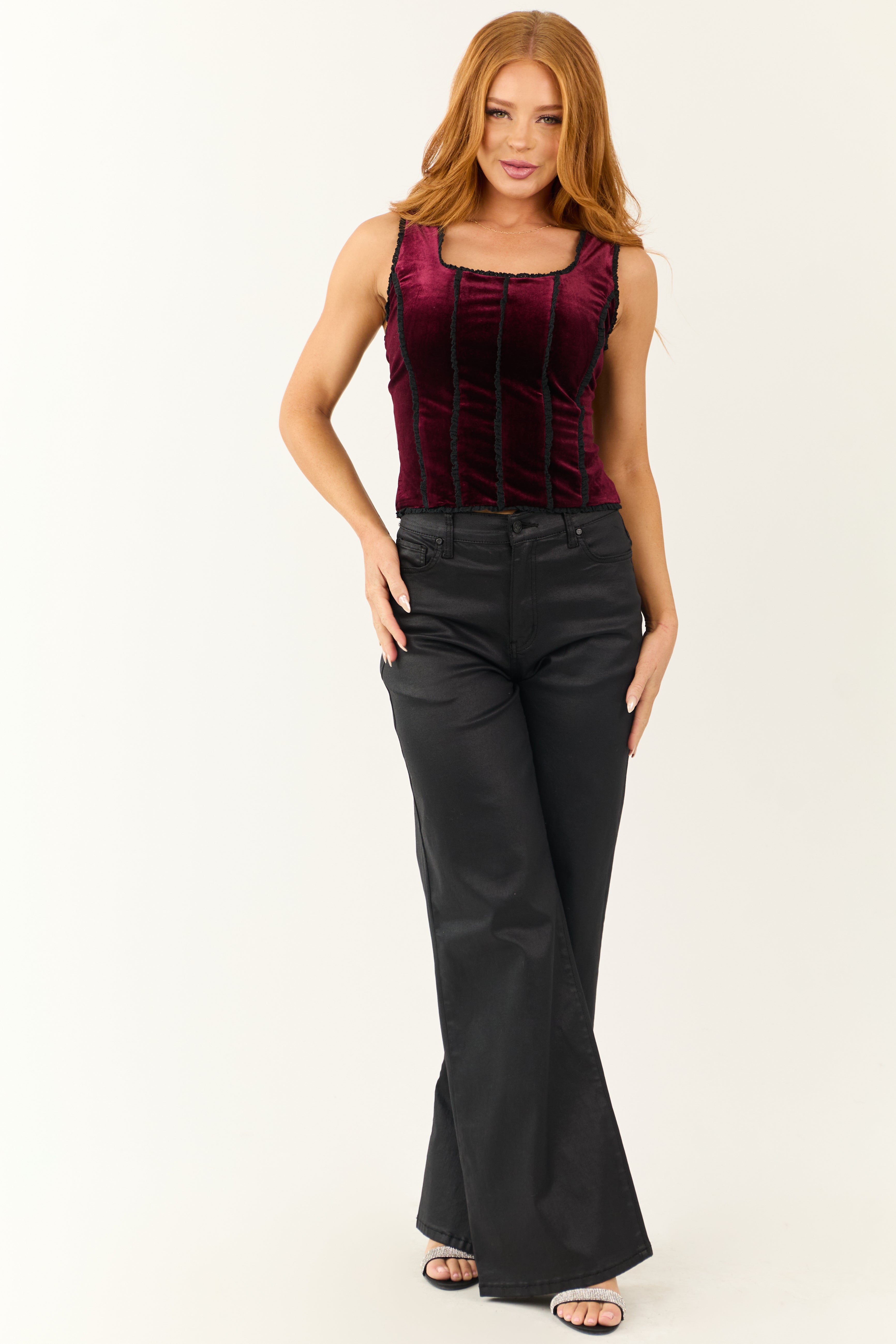 Upgrade your wardrobe with our stylish Black Velvet Lace Trim Tank Top. This sleeveless top features a square neckline, zippered back, and a stretchy velvet construction for comfort. The subtle black lace trim adds a touch of elegance. Made of 95% Polyester and 5% Spandex, this piece is perfect for any occasion. Available in sizes S, M, and L. Hand wash cold and hang to dry for best care. Model is wearing size Small. Height: 55″, Bust: 31″, Waist: 24″.