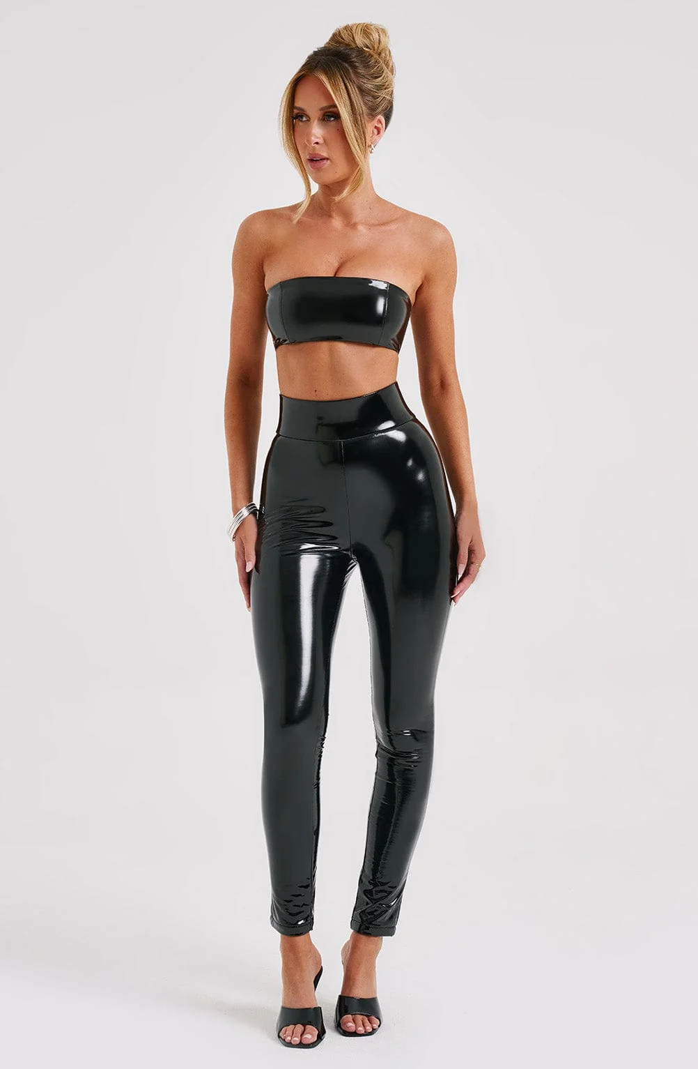Indulge in your most seductive look with the Kai bralet top in premium black vinyl. Experience the fully lined comfort and body-hugging contour for a flawless fit. This strapless style features a zip closure at the back, providing both style and convenience. Elevate your wardrobe with this super cropped sensation. The Kai bralet top is perfect for evenings out, parties, and festivals. Embrace the bold monochrome trend with this statement piece. Order now to enjoy a 20% discount and express your inner diva effortlessly!